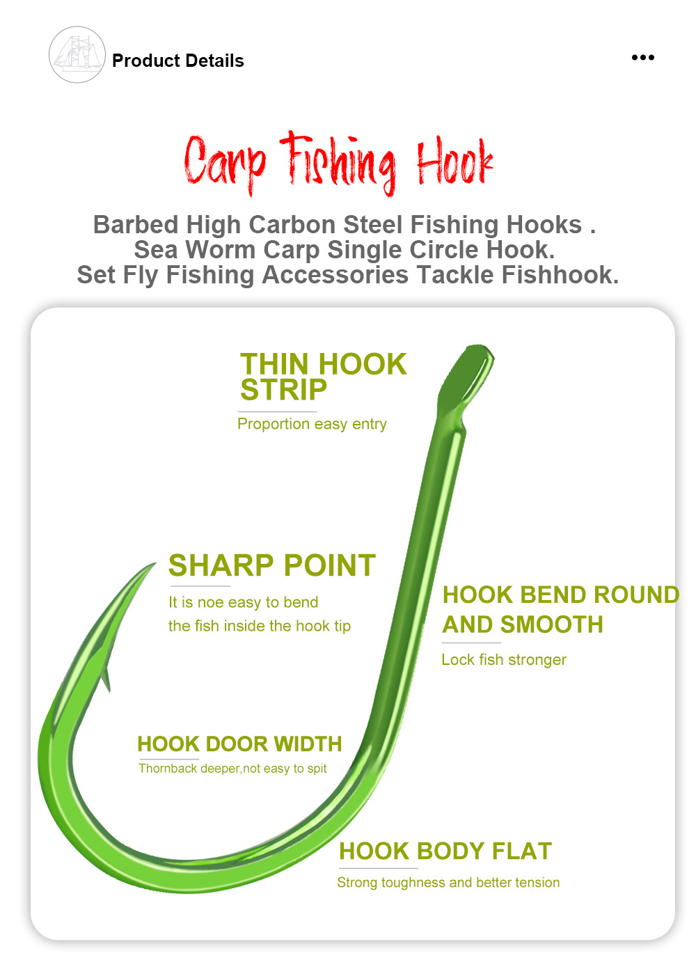 100 Uds 50 Uds anzuelo de pesca plano anzuelo de púas verde mango largo anzuelo pequeño anzuelo de pesca de carpa de acero rico en carbono pista de pesca