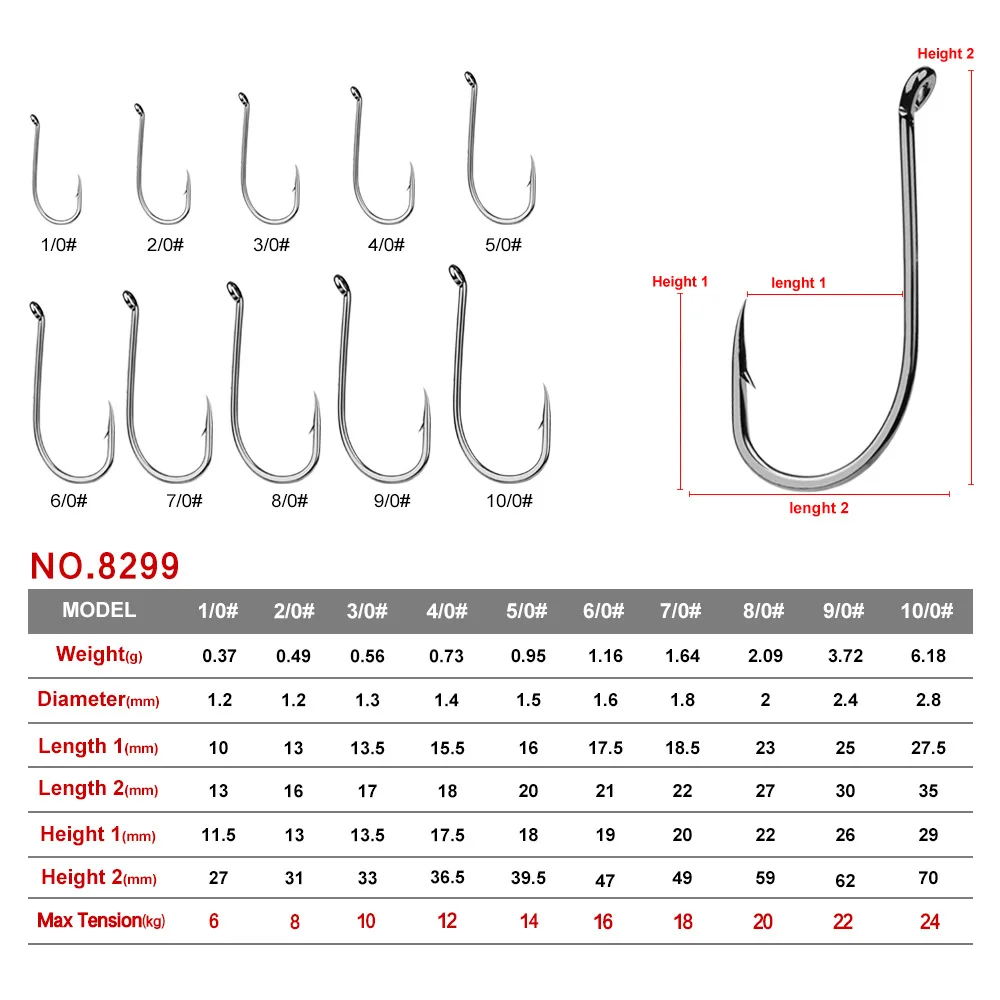 100 Uds. Anzuelo de pesca marca Proberos 8299 Octopus Series HC-72A anzuelo de acero rico en carbono lubina de agua salada 8299 1/0-10/0 # Gancho