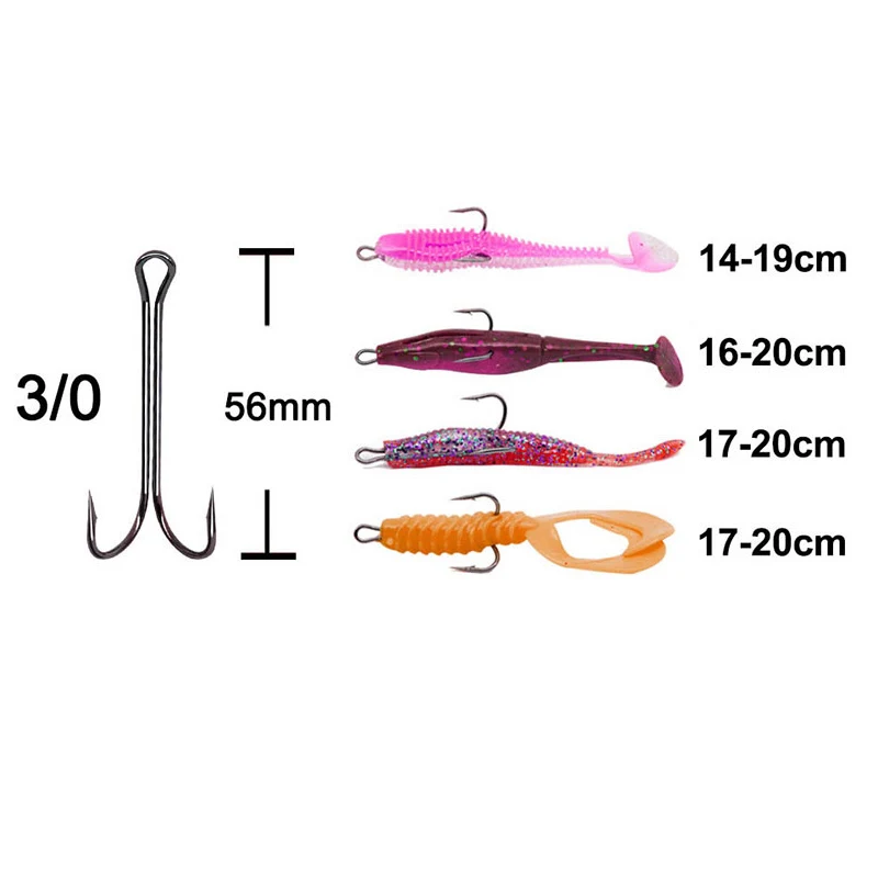 100 Uds. Anzuelo de pesca sin malezas de vástago largo, anzuelo doble para señuelo suave, atado de moscas, anzuelo doble para anzuelo de lubina, aparejos de pesca
