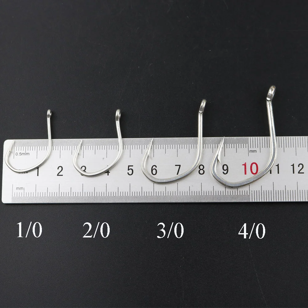 100 Uds anzuelos 1/0 2/0 3/0 4/0 cabezal de balanceo lento anzuelo de hierro para Jigging barco antioxidante estañado accesorios de Pesca de mar