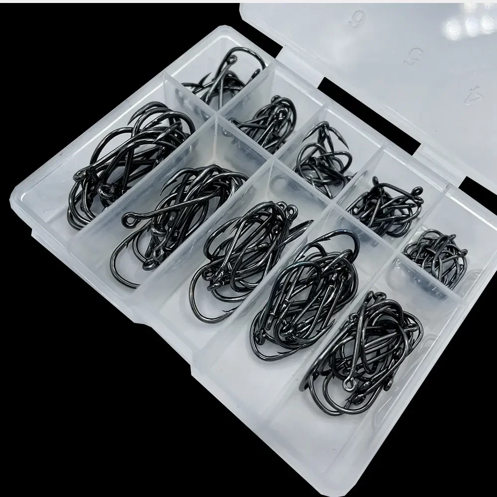 100 Uds anzuelos de pesca de acero con alto contenido de carbono tamaño mixto 3#-12# Gancho de plantilla de púas para pesca de carpa, accesorios de pesca con mosca