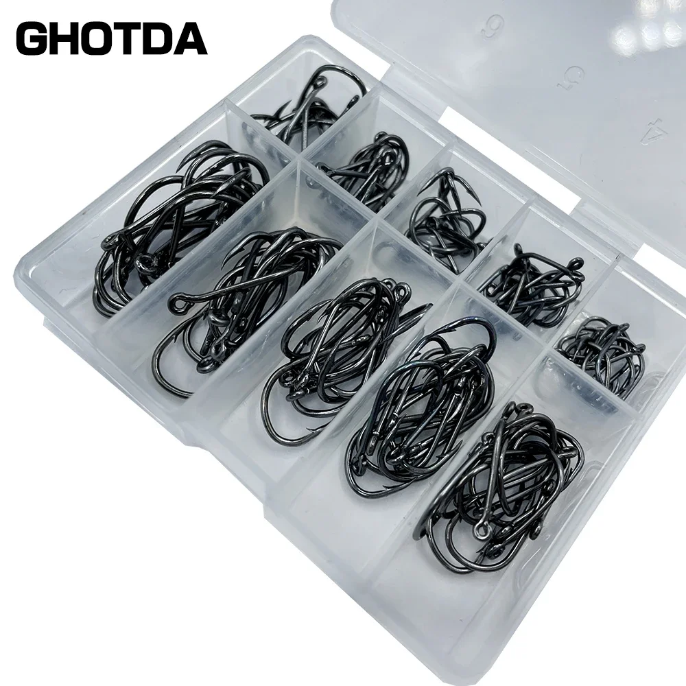 100 Uds anzuelos de pesca de acero con alto contenido de carbono tamaño mixto 3#-12# Gancho de plantilla de púas para pesca de carpa, accesorios de pesca con mosca
