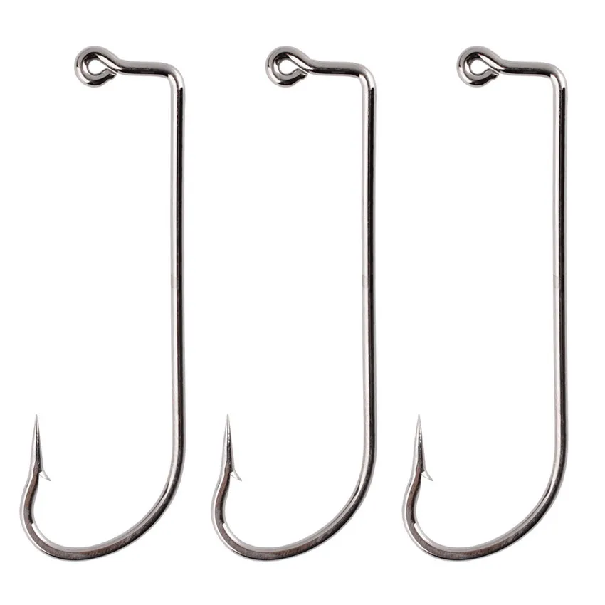 100 Uds anzuelos de pesca anzuelo de acero rico en carbono negro anzuelo de pesca vertical compensado de 90 grados para señuelo suave tamaño 2 # A 6/0 #