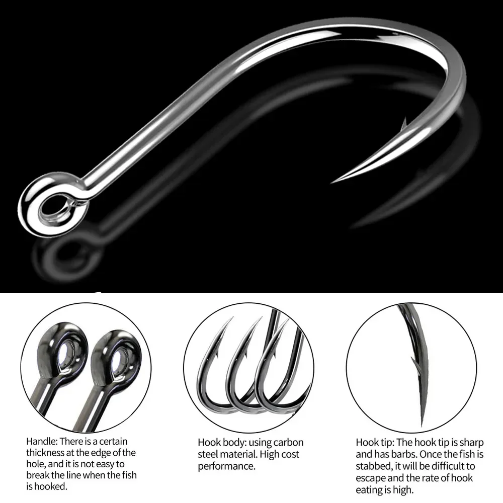 Anzuelos de pesca circulares de acero al carbono 100, anzuelos de pesca de agua salada, anzuelos de bagre, 3-12 #, carpa cruciana, pesca en el mar, anzuelo de púas, equipo de pesca