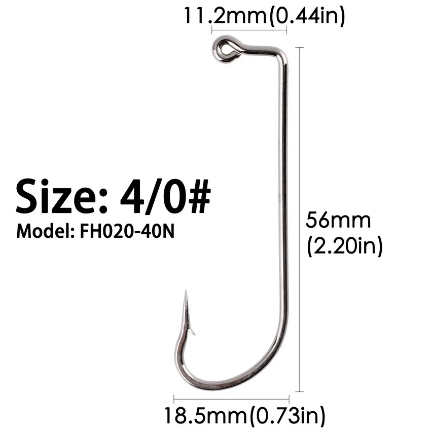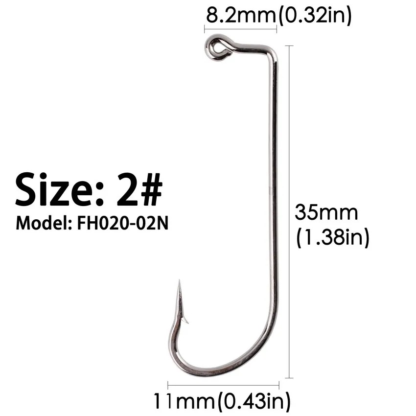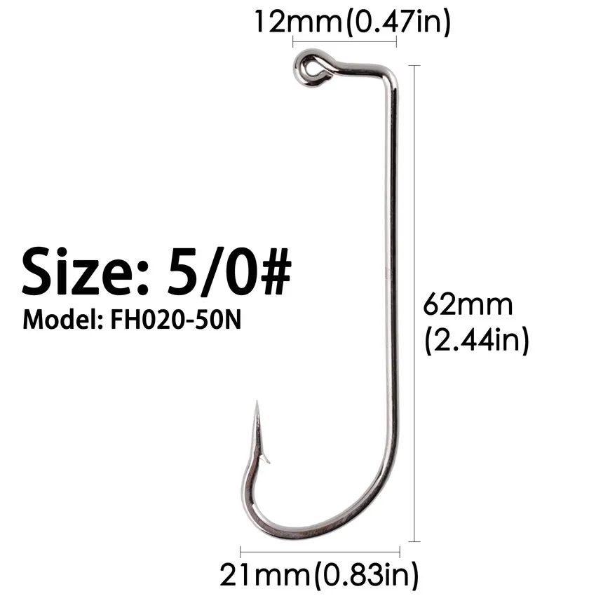 100 Uds anzuelos de pesca de vástago largo anzuelo de acero rico en carbono negro anzuelo de pesca vertical compensado de 90 grados para señuelo suave tamaño 2 # -5/0 #