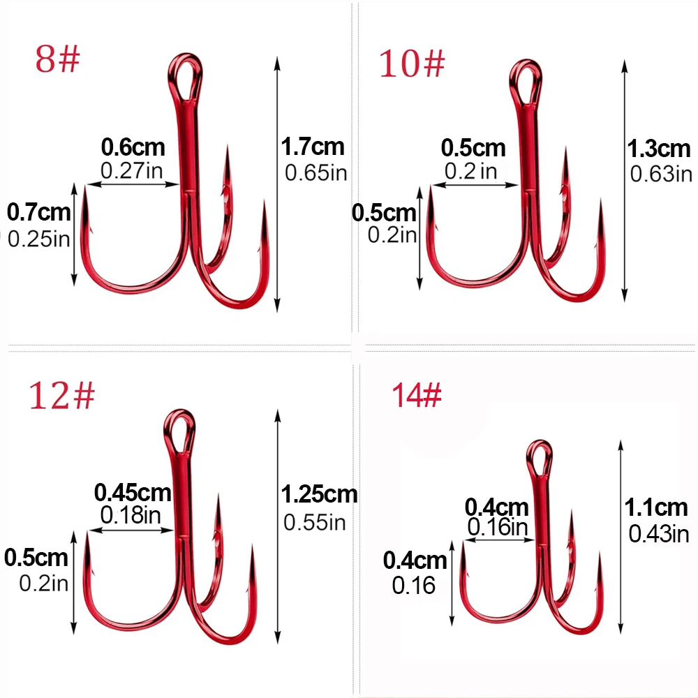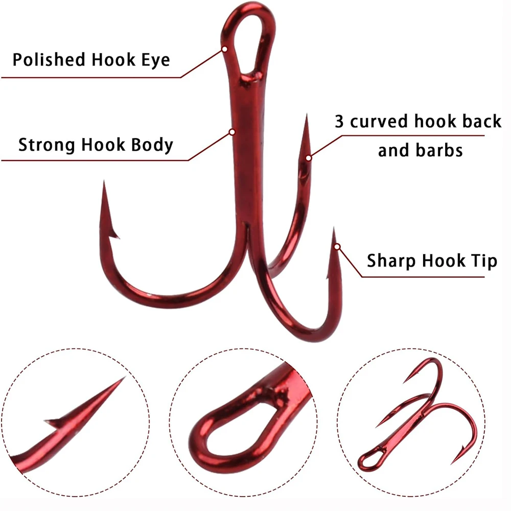 3. Estos anzuelos triples de pesca son los anzuelos de repuesto perfectos para tapones, cucharas, señuelos de cebo de pesca giratorios, para especies de lubina, trucha, arenque, anguila, panfish y salmón, etc.