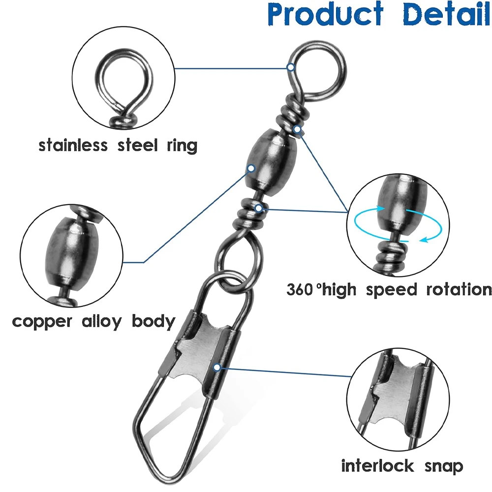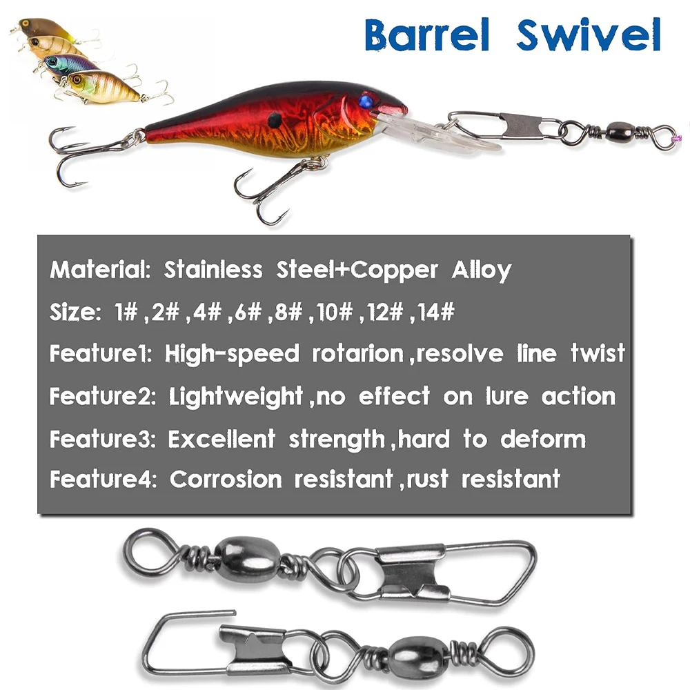 2.360° La rotación sin restricciones puede evitar el enredo de las líneas de pesca y hacer que el cebo parezca nadar de manera más natural.La superficie del cilindro giratorio ha sido pulida, muy lisa y no dañará el hilo de pescar.
