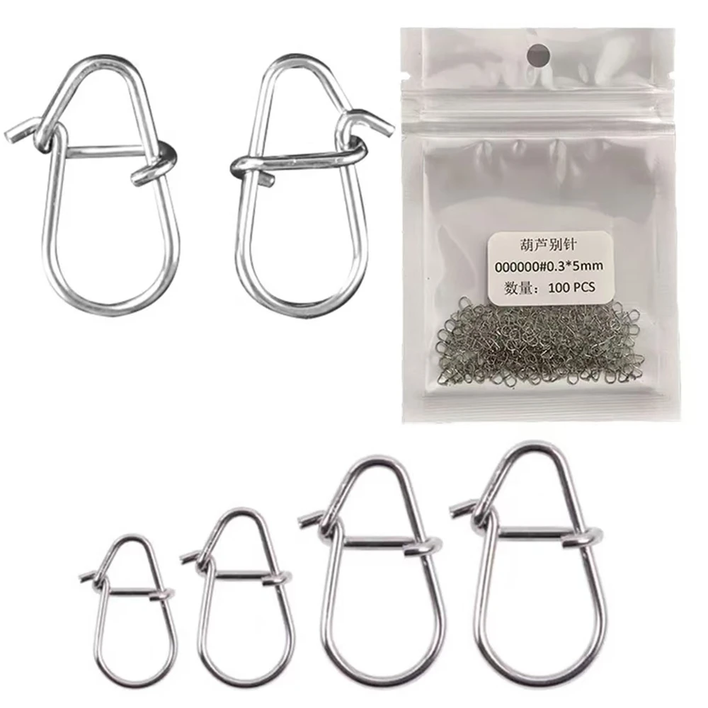 100 Uds. De calabaza de acero inoxidable, Clip de seguridad rápido, Pin de bloqueo, fuerte tirón, anzuelo, conector de señuelo, accesorios de Pesca