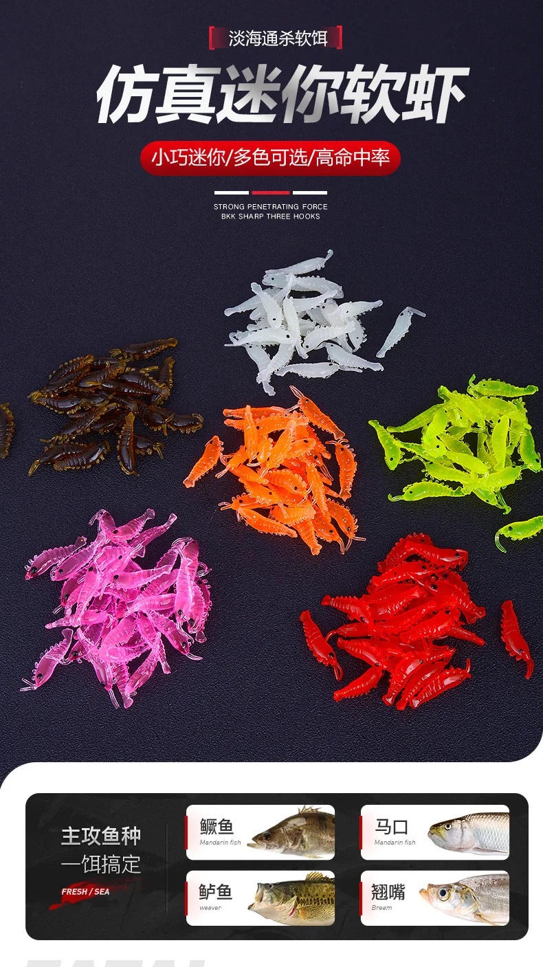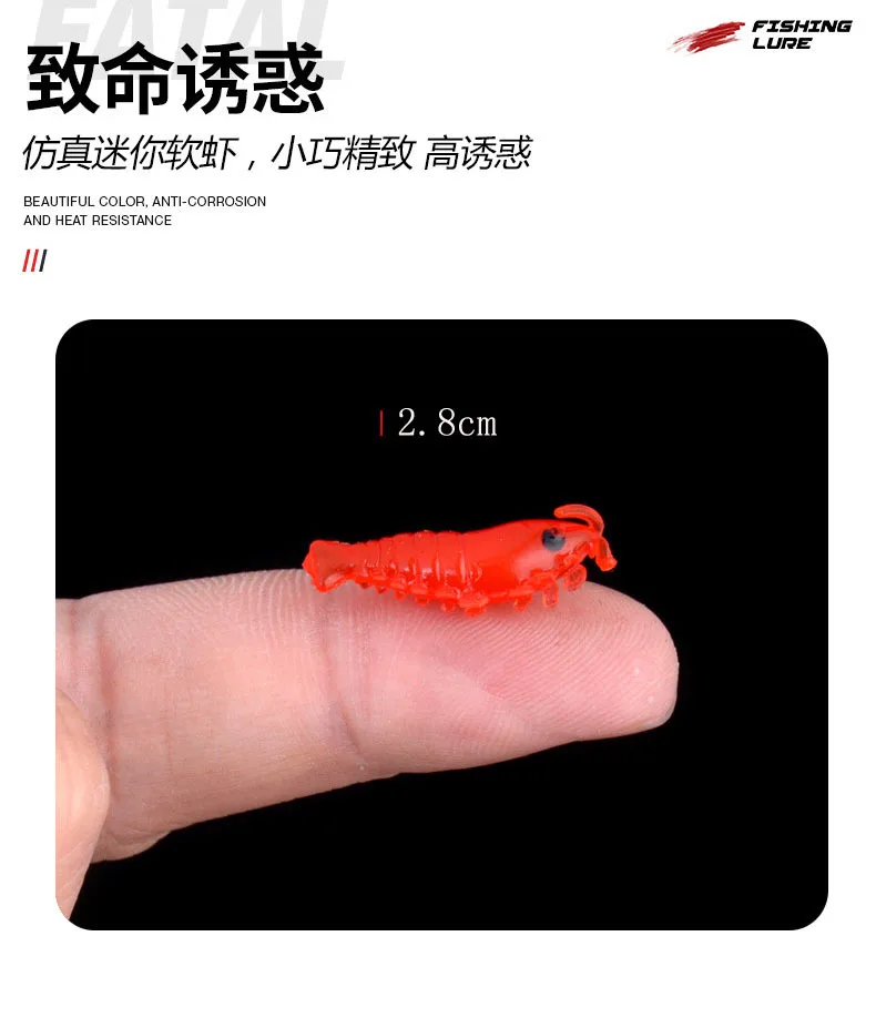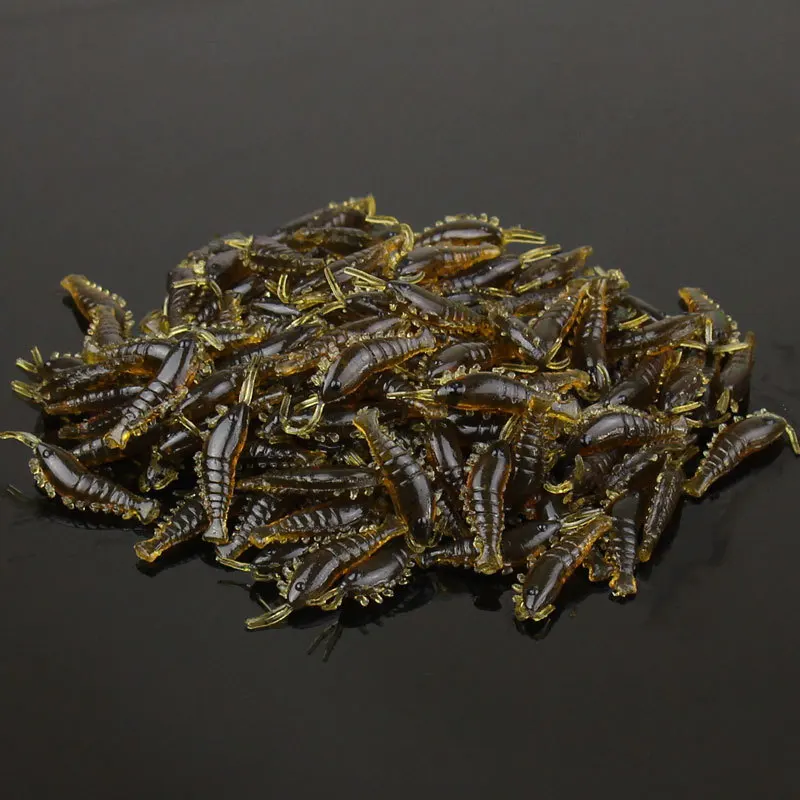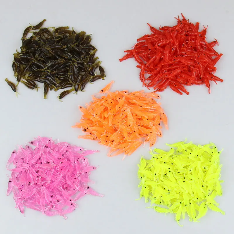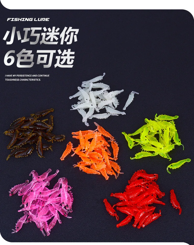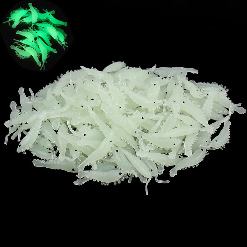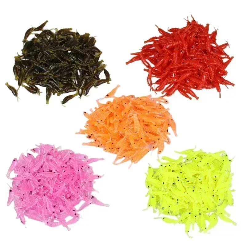 100 Uds cebo de Camarón Señuelos de Pesca de silicona suave 2,8 cm/0,3g brillo luminoso gusano de agua dulce nuevo patrón aparejos de Pesca