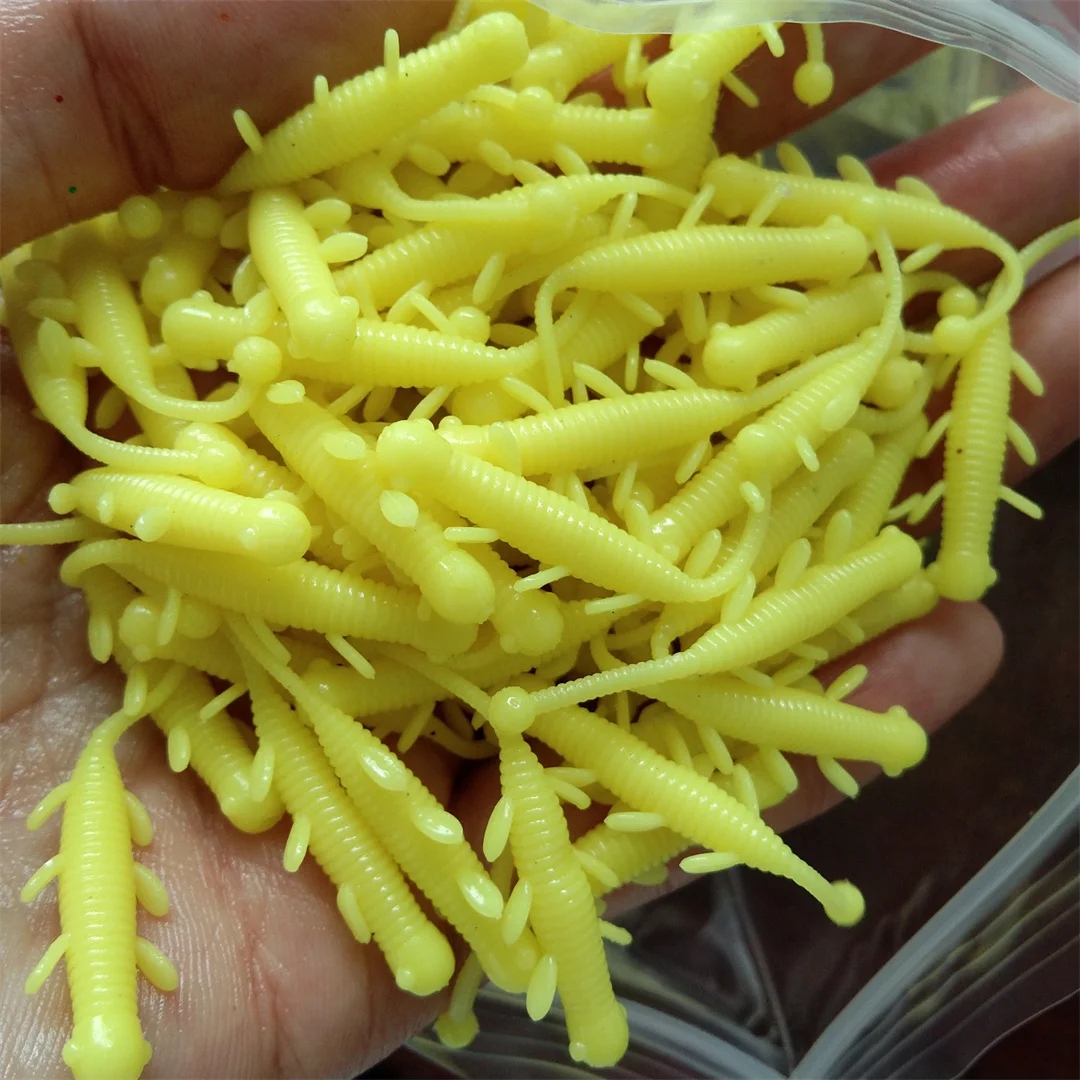 100 Uds cebos blandos señuelo de pesca Artificial 4cm acción flotante TPE gusano Swimbaits camarones señuelos blandos