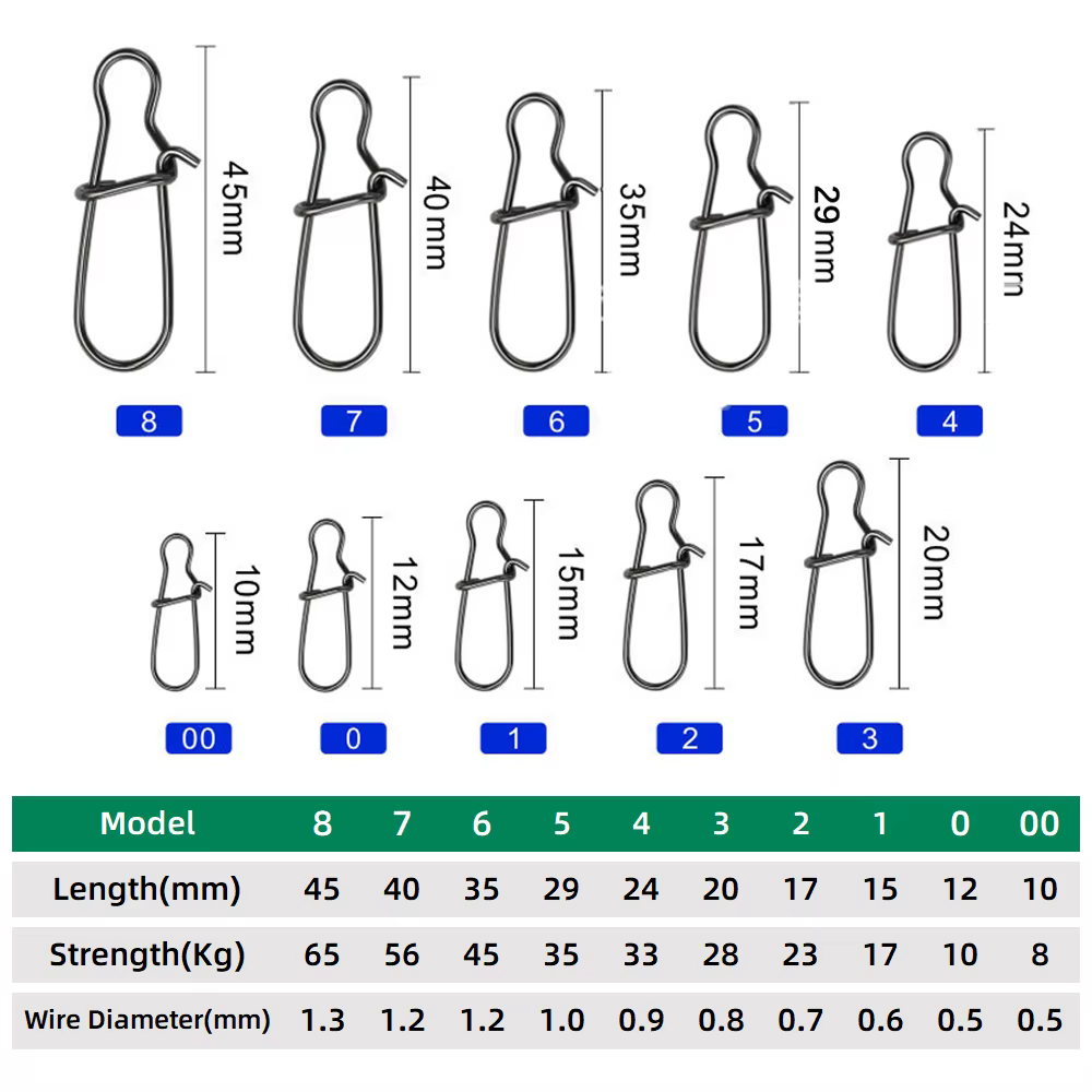 DNDYUJU 100 Uds pesca Clip rápido bloqueo conector de pesca Pin de seguridad de acero inoxidable herramienta de aparejos de pesca giratoria para señuelos anzuelos