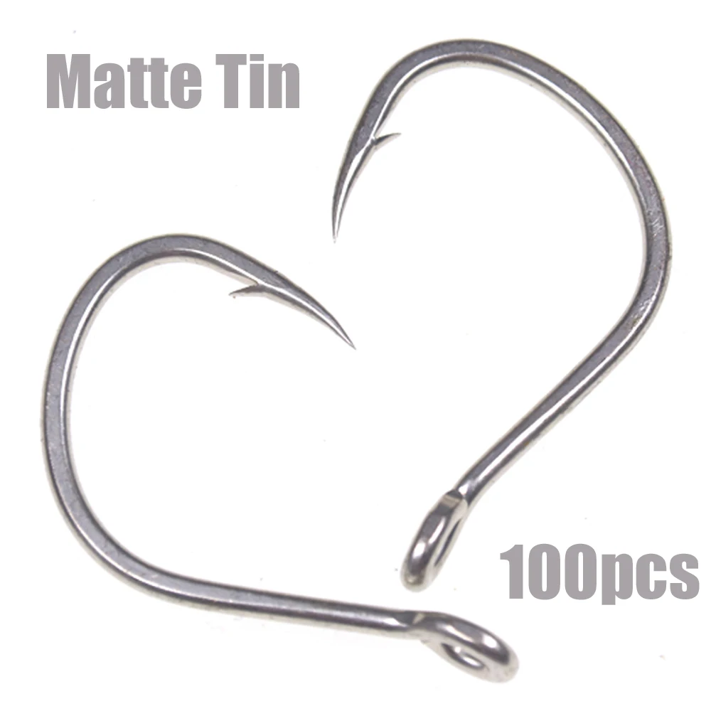 100 Uds. Gancho de púas de alambre de acero grueso de estaño mate antioxidante fuerte ayuda de agua salada anzuelo de señuelo Jigging 1# 1/0 2/0 3/0 4/0 5/0