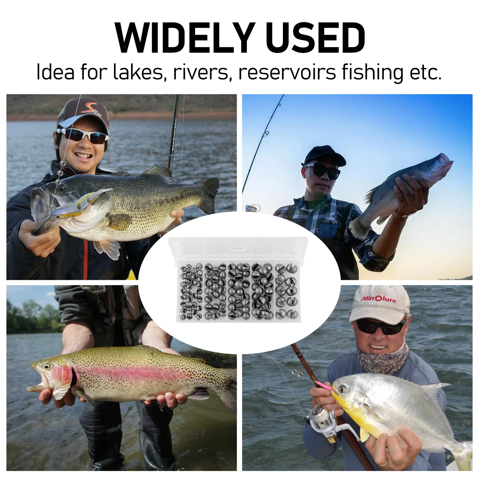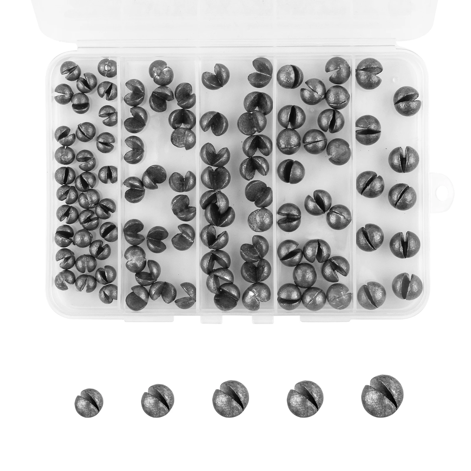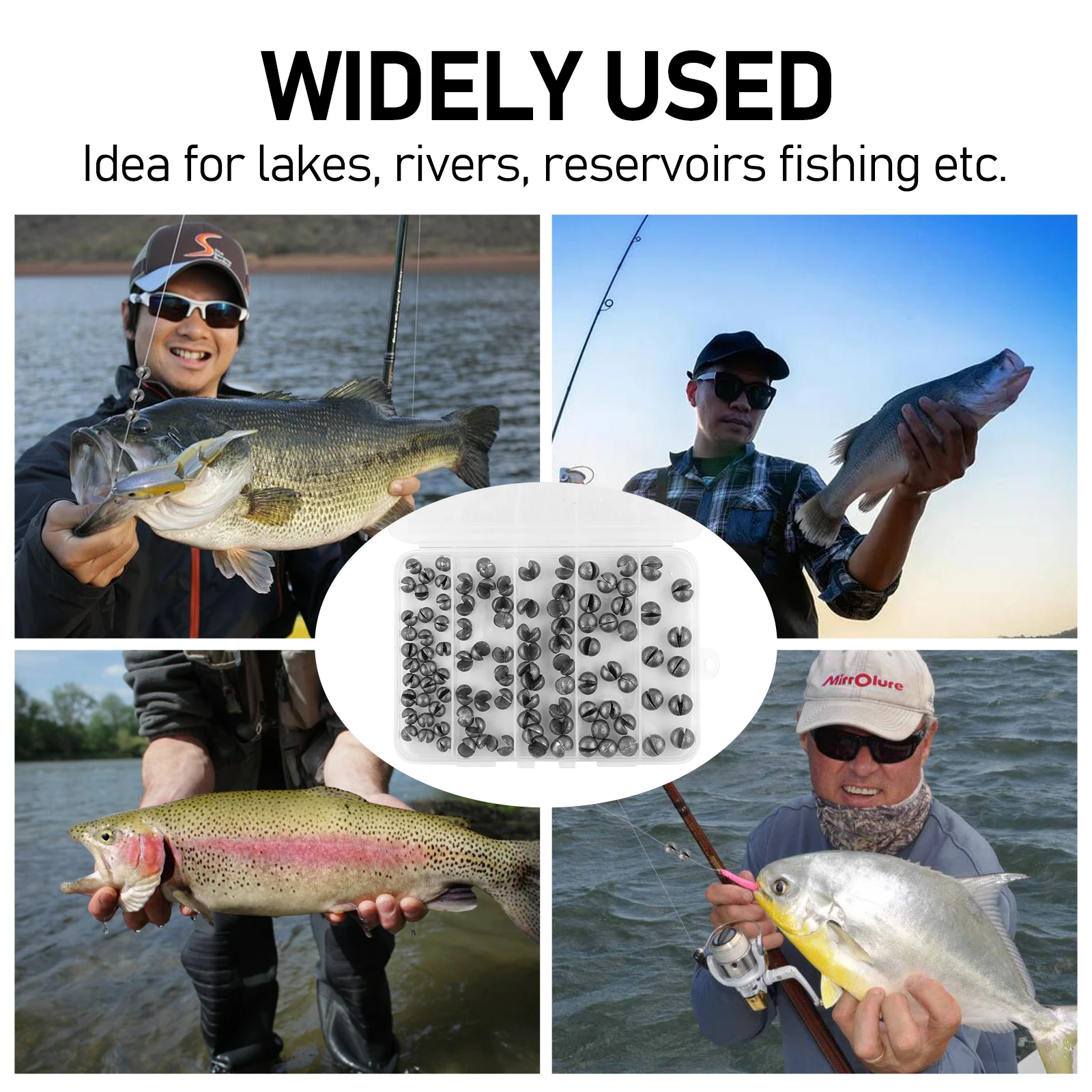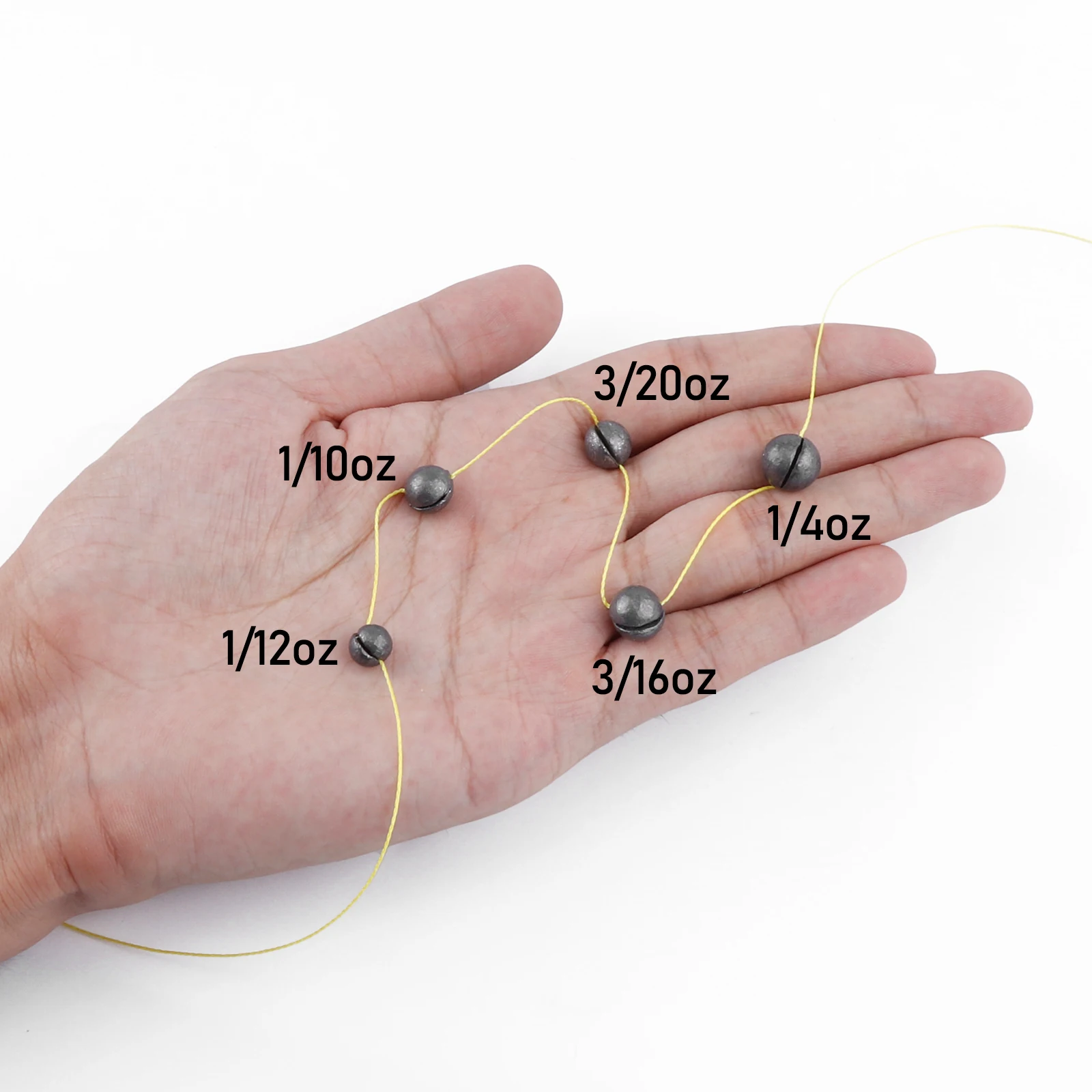 Múltiples tamaños: Disponible en 6 tamaños para un control óptimo de profundidad y acción: 1/64 oz-30 piezas, 1/48 oz-20 piezas, 1/36 oz-15 piezas, 1/28 oz-15 piezas, 1/25 oz-10 piezas, 1/20 oz-10 piezas; Total de 100 plomos extraíbles para ajustes versátiles.