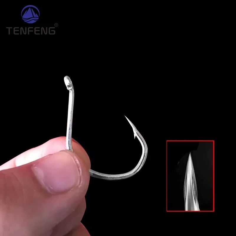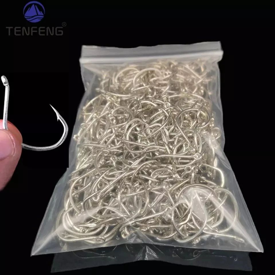 100 Uds. Productos de Pesca agua de mar brillante estaño chapado pescado púas círculo gancho pesca perca carpa aparejos de Pesca de lubina Jig Head Pesca