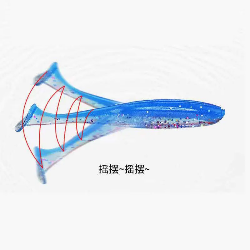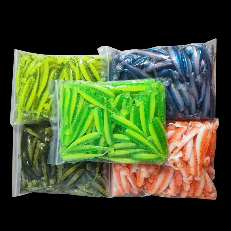 100 Uds T cola señuelo suave cebo Shad gusano 55mm 65mm75mm cebo Artificial Swimbait cebo Wobbler cebos blandos deportes de pesca de silicona