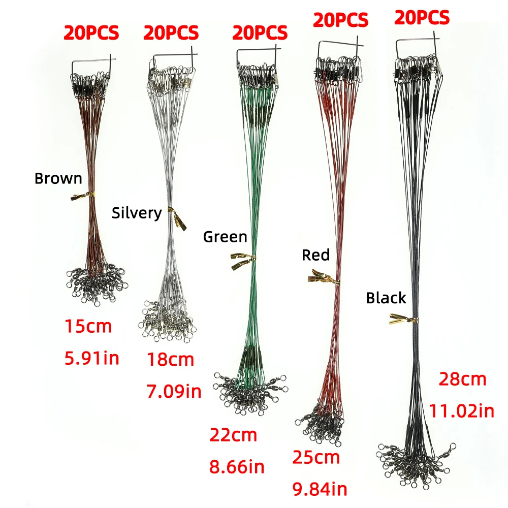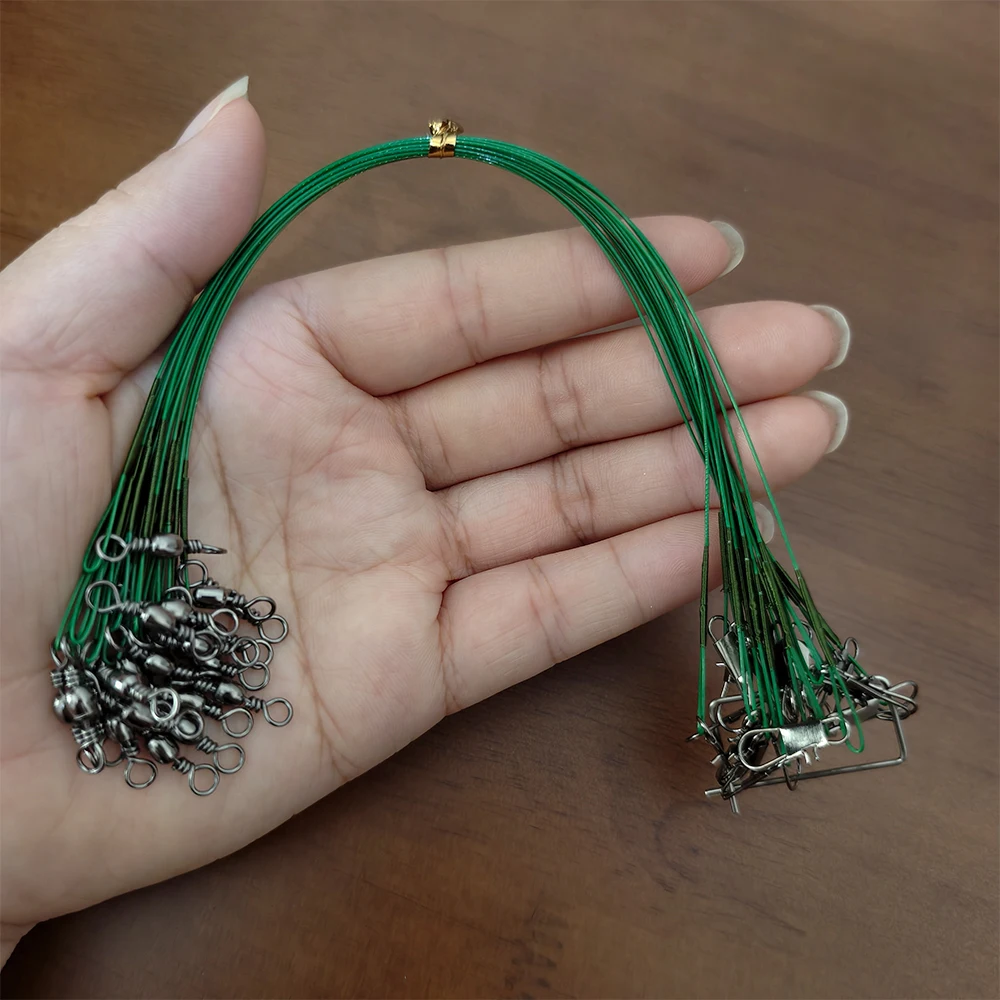 100 unids/tarjeta 15cm ~ 28cm línea de pesca de acero antimordedura líder de alambre de acero con broche giratorio recubierto de nailon accesorio de pesca de alambre de rastreo