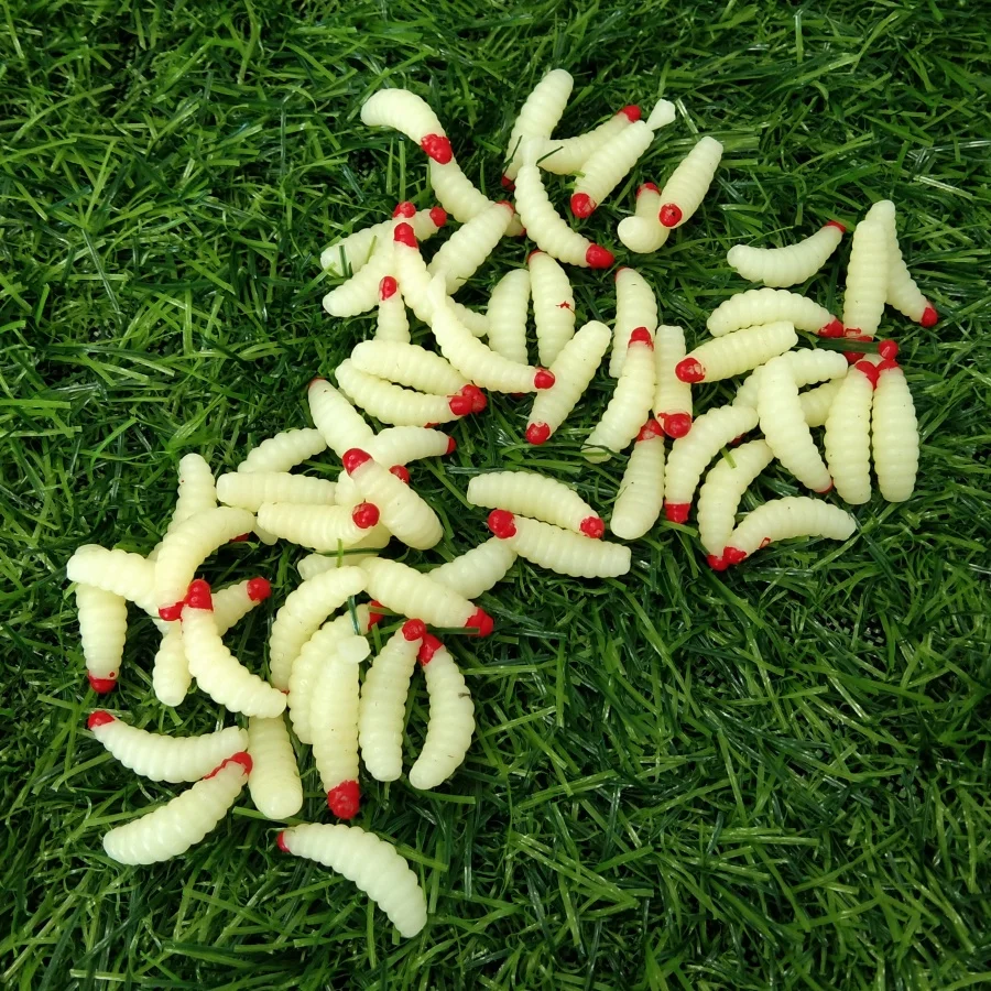 100 unids/bolsa 2cm 0,4g pan gusano silicona cebos artificiales gusano larva suave señuelo de pesca ganchos olor gusanos brillo camarones