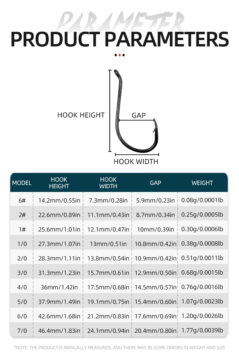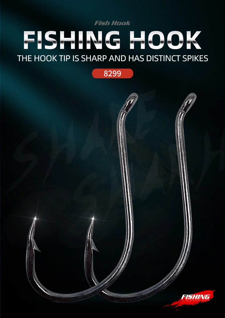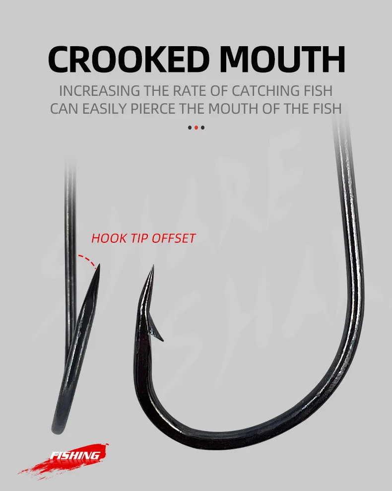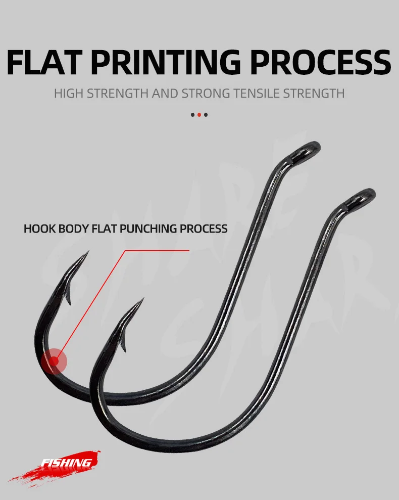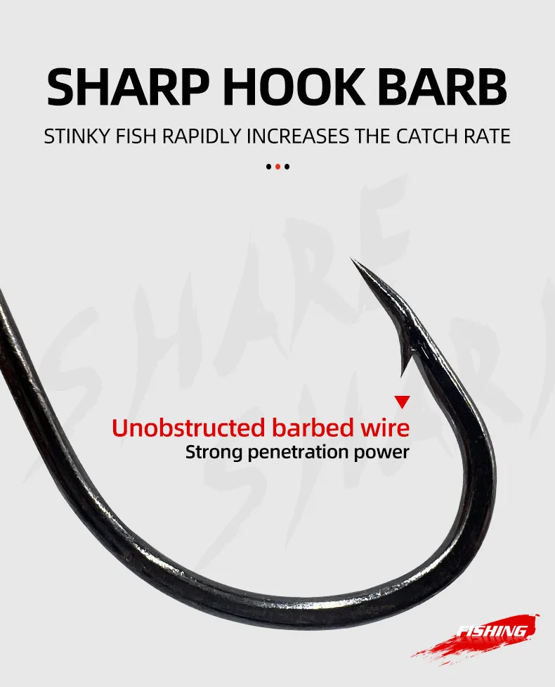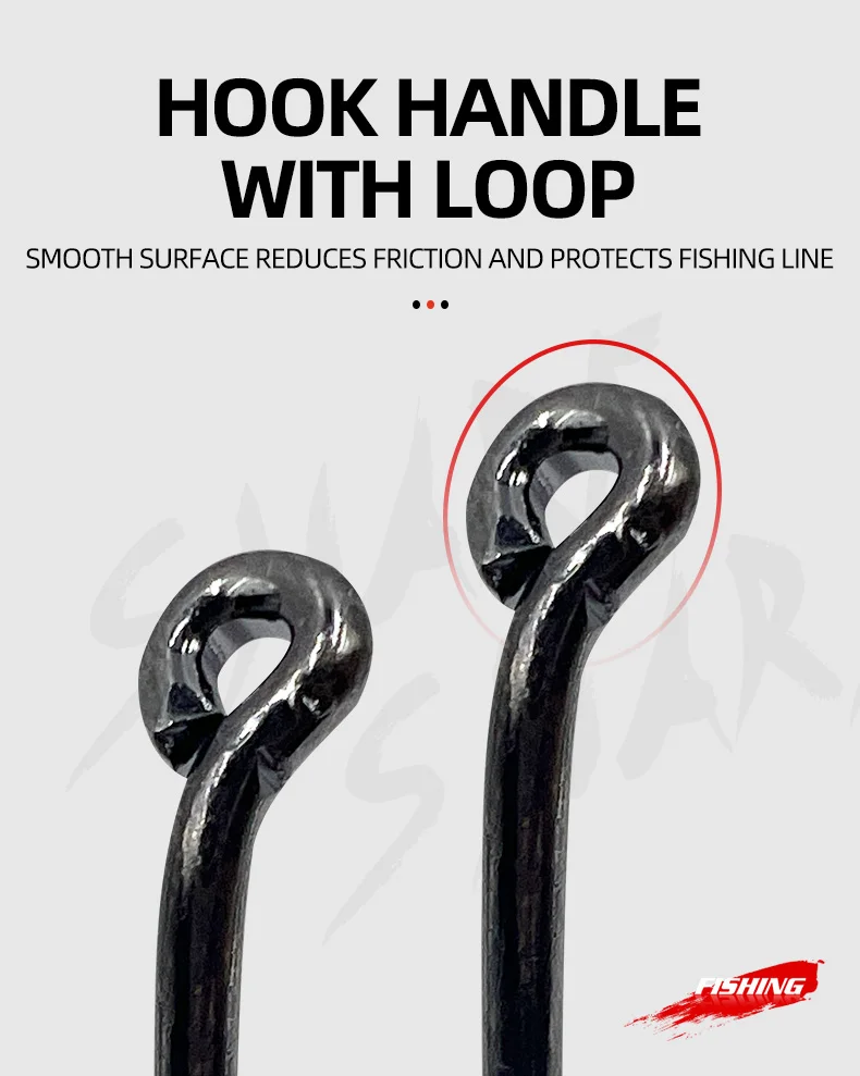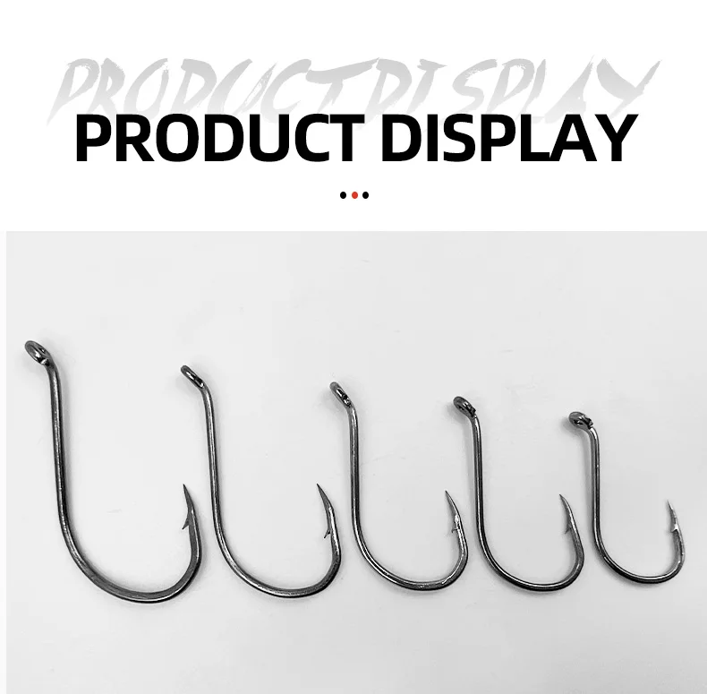 Ojos traseros en ángulo –Los ojos completamente cerrados protegen su hilo de pescar contra cortes y deslizamientos; El propósito del punto de compensación es bloquear la retirada del pez, para que no tengan forma.