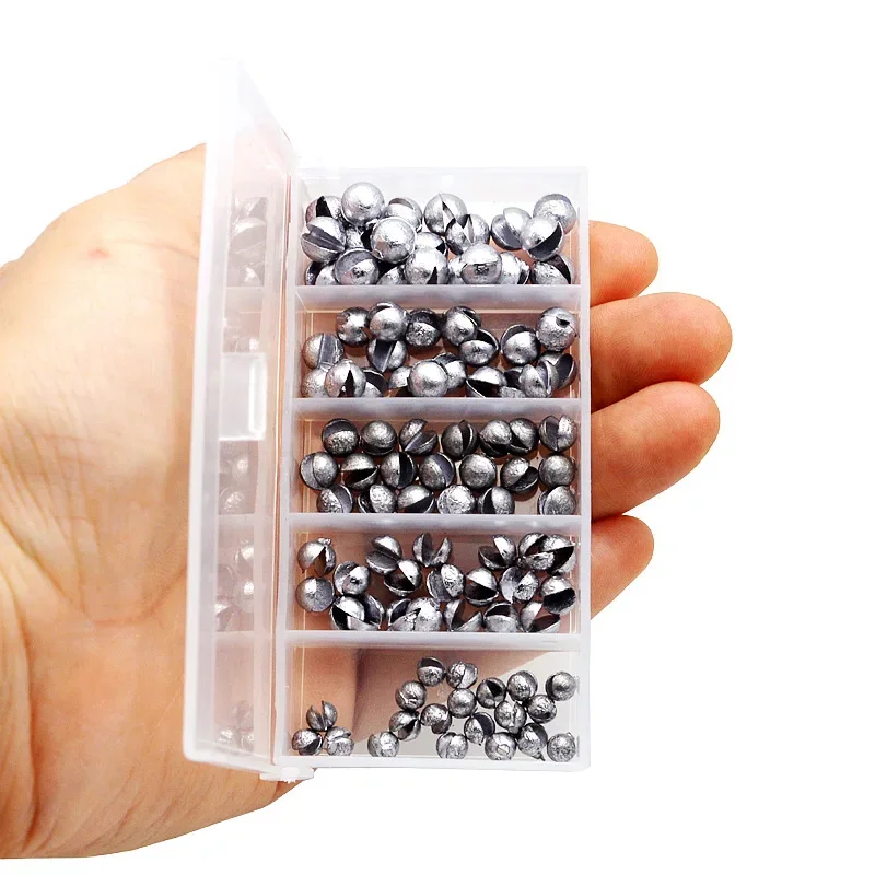 100 unids/caja de pesca clip de apertura bifurcado redondo accesorios de pesca de plomo 0,3G-2G