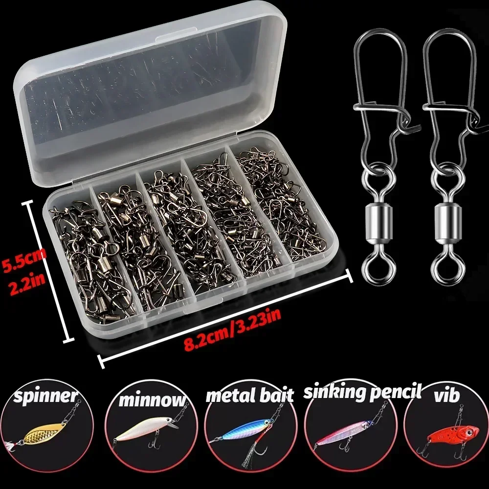Conector a presión giratorio, rodamiento de pasador de acero inoxidable, interbloqueo giratorio 360, aparejos de anillo en forma de 8, herramientas de Pesca, gancho, señuelo, conexión de alambre, accesorios de pesca