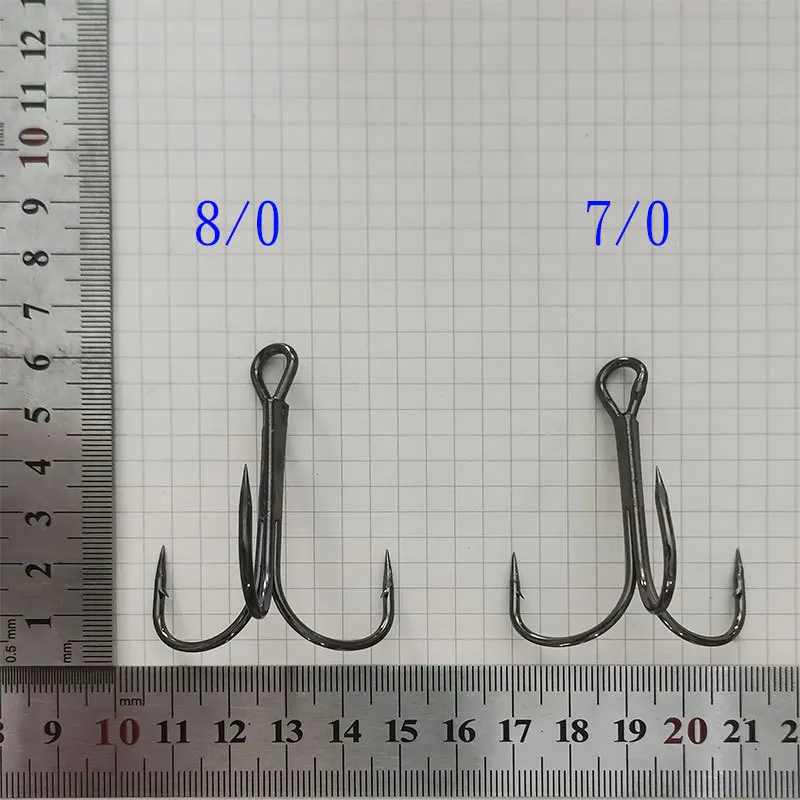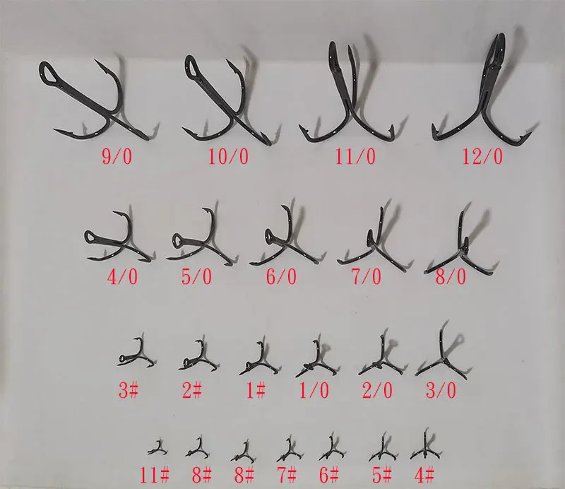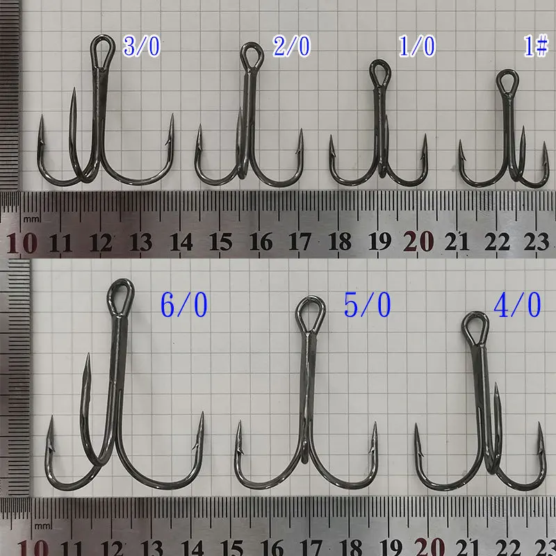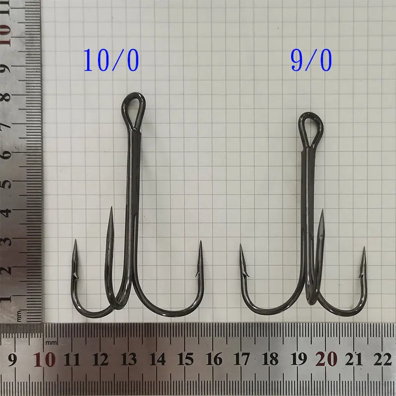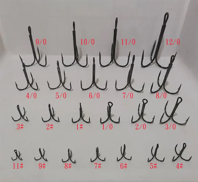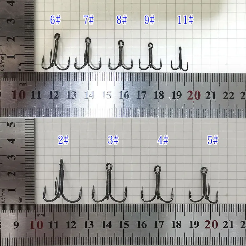 100 unids/lote anzuelos 2 # 4 # 6 # 8 # 10 # Anzuelo de pesca negro, anzuelo triple volteado de acero rico en carbono, accesorios de pesca, productos para lubina