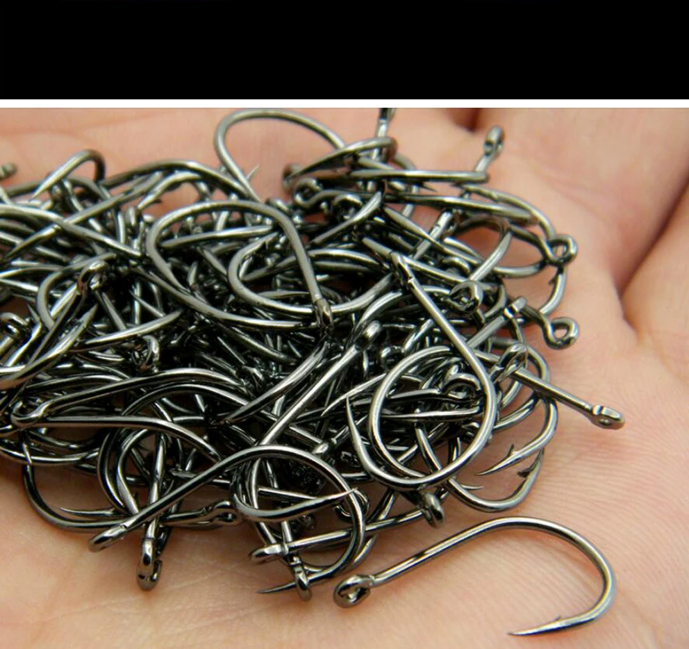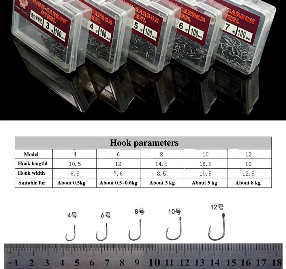 100 unids/lote anzuelos de pesca de acero con alto contenido de carbono 4 6 8 10 12 señuelo de manivela Ver Pesca