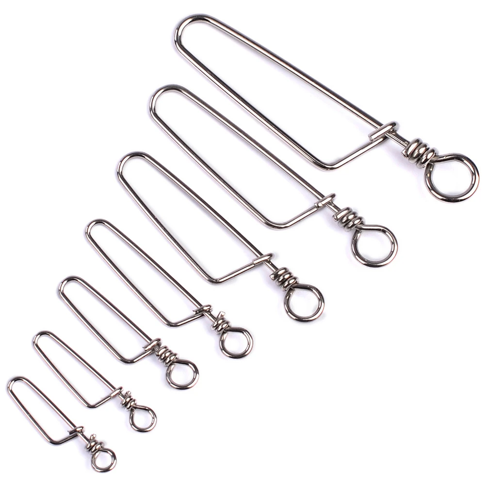 100 unids/lote de eslabones de pesca de acero inoxidable, accesorios de conector de anzuelo a presión, giratorio, entrelazado