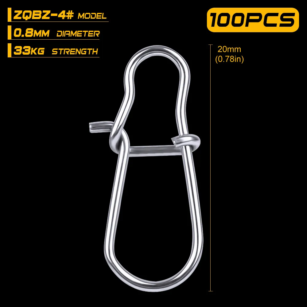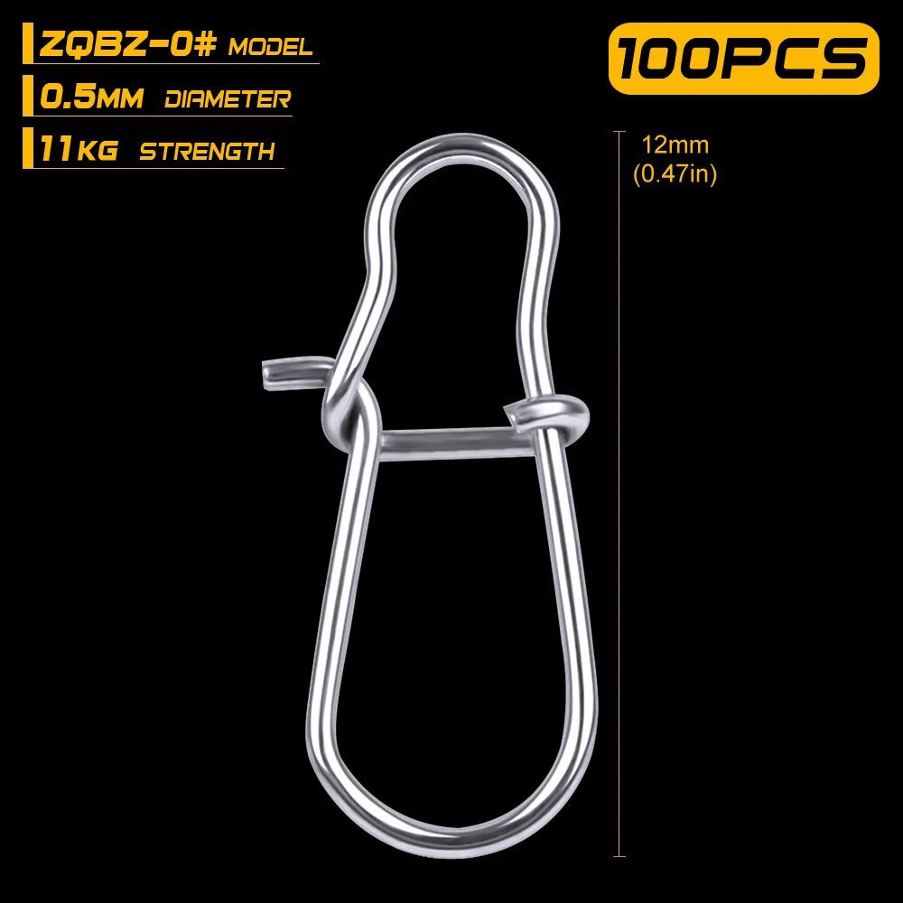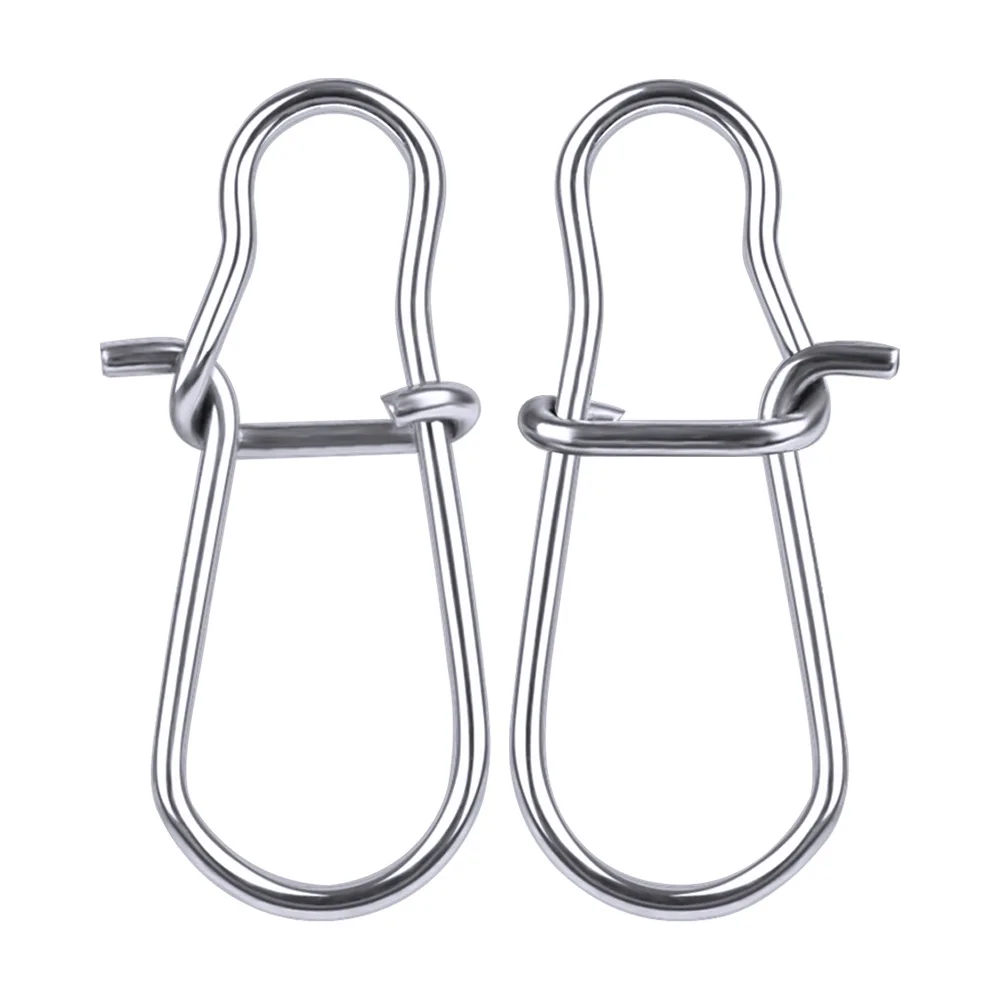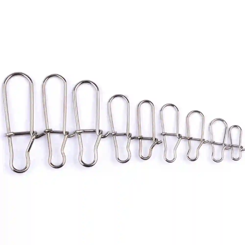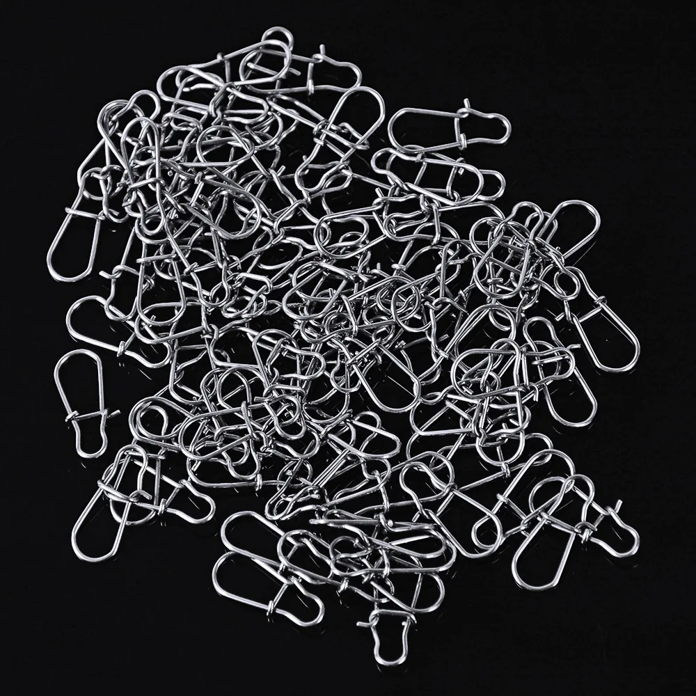 100 unids/lote de pasador de presión de pesca de acero inoxidable, barril de pesca, bloqueo de Clip rápido, conector de señuelo giratorio a presión, accesorios de aparejos