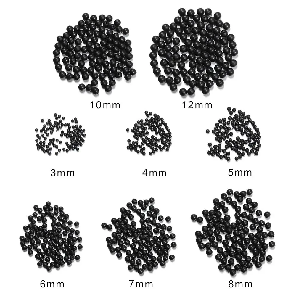 100 unids/set cuentas de pesca negras suaves tapón espacial negro 3mm-12mm frijoles duros redondos Señuelos de pesca cebo anzuelo accesorios de aparejo