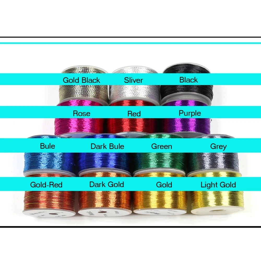 Línea brillante y fuerte, múltiples colores para elegir.Fuerte fibras de nailon en el interior con revestimiento metálico brillante.fuerte y brillante.