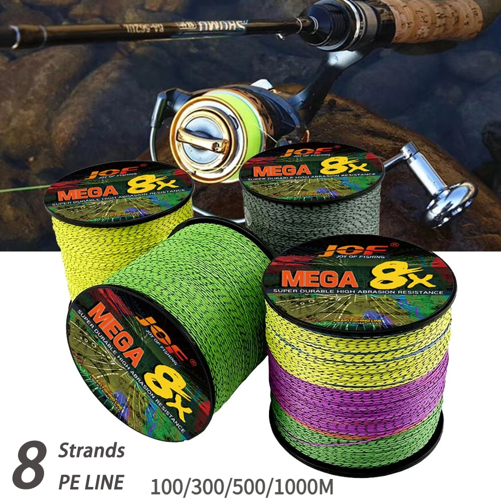 2: Línea de PE X8 Strands, construcción única de trenza moteada, hecha de fibras de PE de ultra alta resistencia.