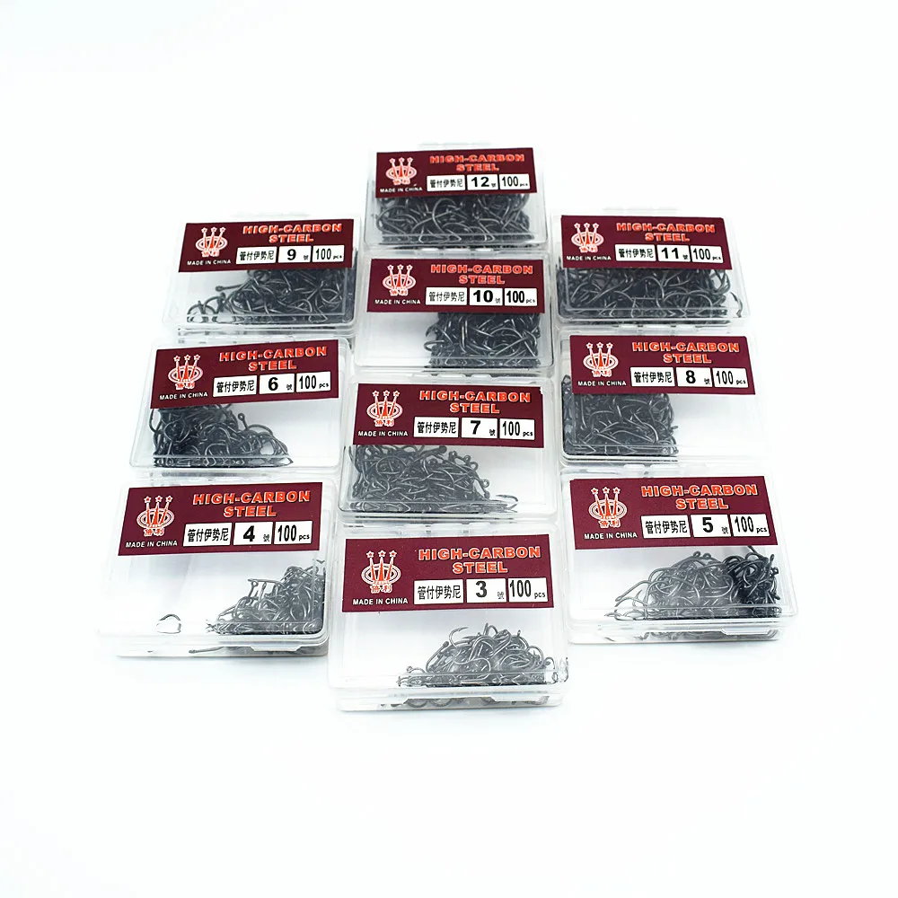 1000 piezas mezcladas de 10 tamaños 3-12 # con caja, cebo de pesca de carpa de acero al carbono, anzuelos de púas afilados