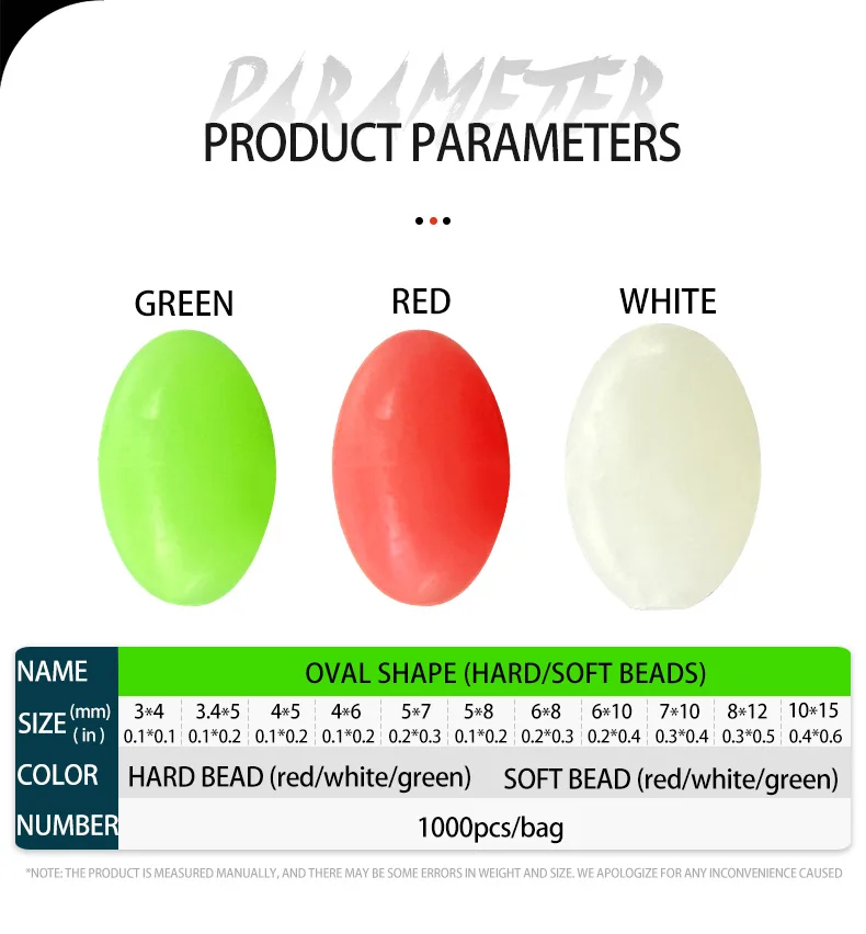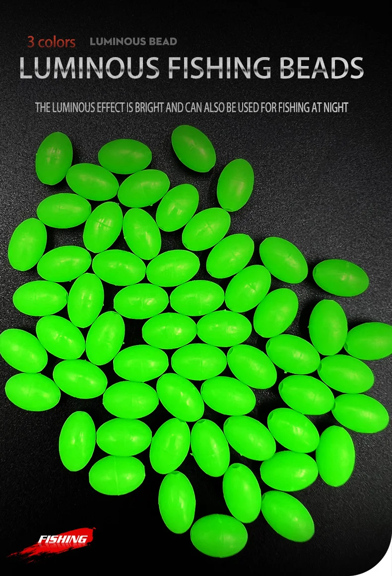 1000 Uds. Cuentas de pesca que brillan en la oscuridad, cuentas luminosas ovaladas de plástico duro/suave, tapón, aparejos de cebo de pesca, accesorios para trucha