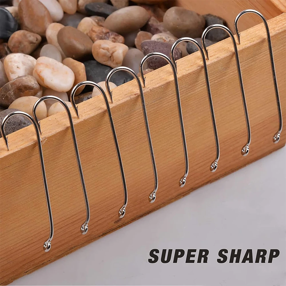 【Súper afilado】 Ganchos para atar moscas de vástago largo con diseño de púas, apuñala a los peces rápidamente. La punta del anzuelo es súper afilada y no es fácil de desacoplar.