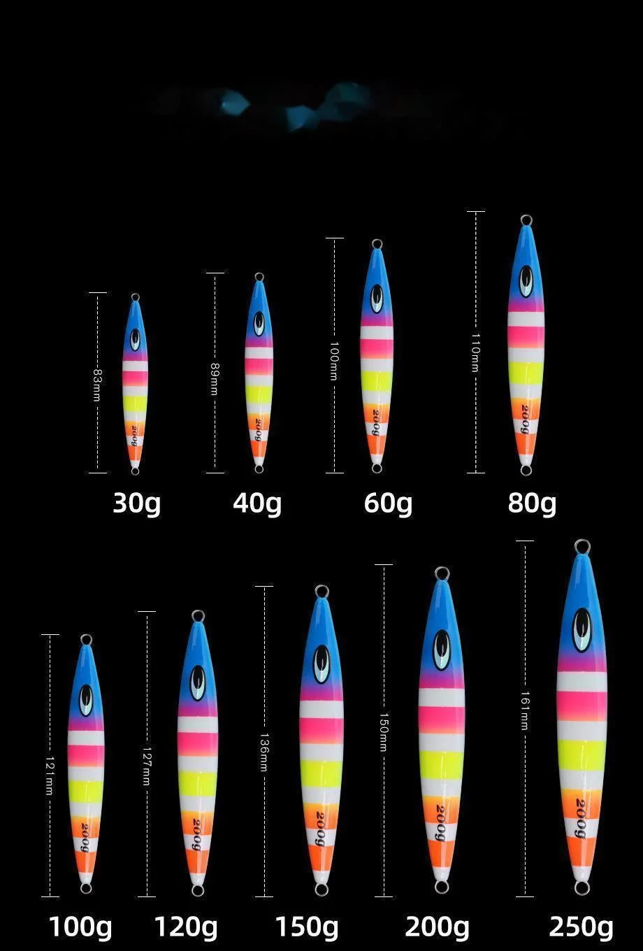 100g 200g 150g 120g Jig cebo luz nocturna velocidad hundimiento plomo cebo para peces pesca en el mar barco pesca caballa atún