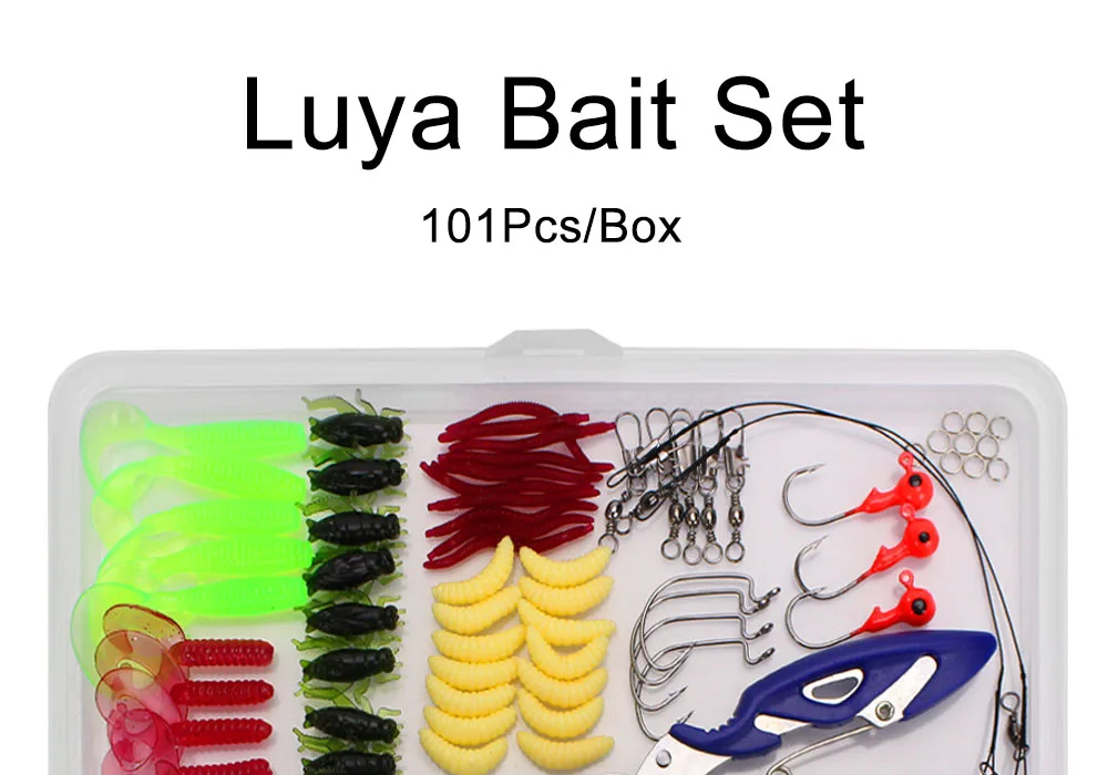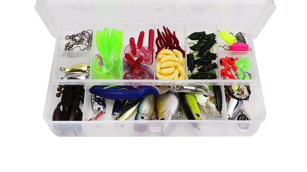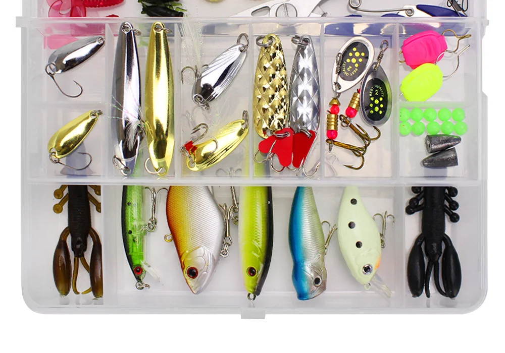 101 Uds Kit completo de Señuelos de Pesca Set Wobblers de plástico mezclado cucharas de plantilla de Metal señuelo suave cebo de silicona juego de accesorios de aparejos de pesca