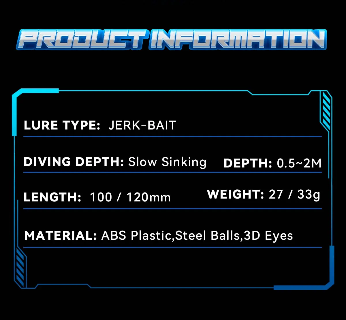 Buster almizclado JerkbaitPeso: 27Movimiento de Natación: hundimiento lento