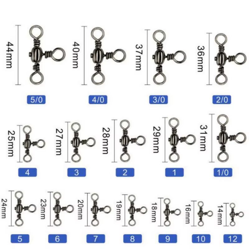 10 unids/bolsa accesorios de pesca conector de tres clavijas niquelado negro divisor de sublínea giratorio en T pesca al aire libre
