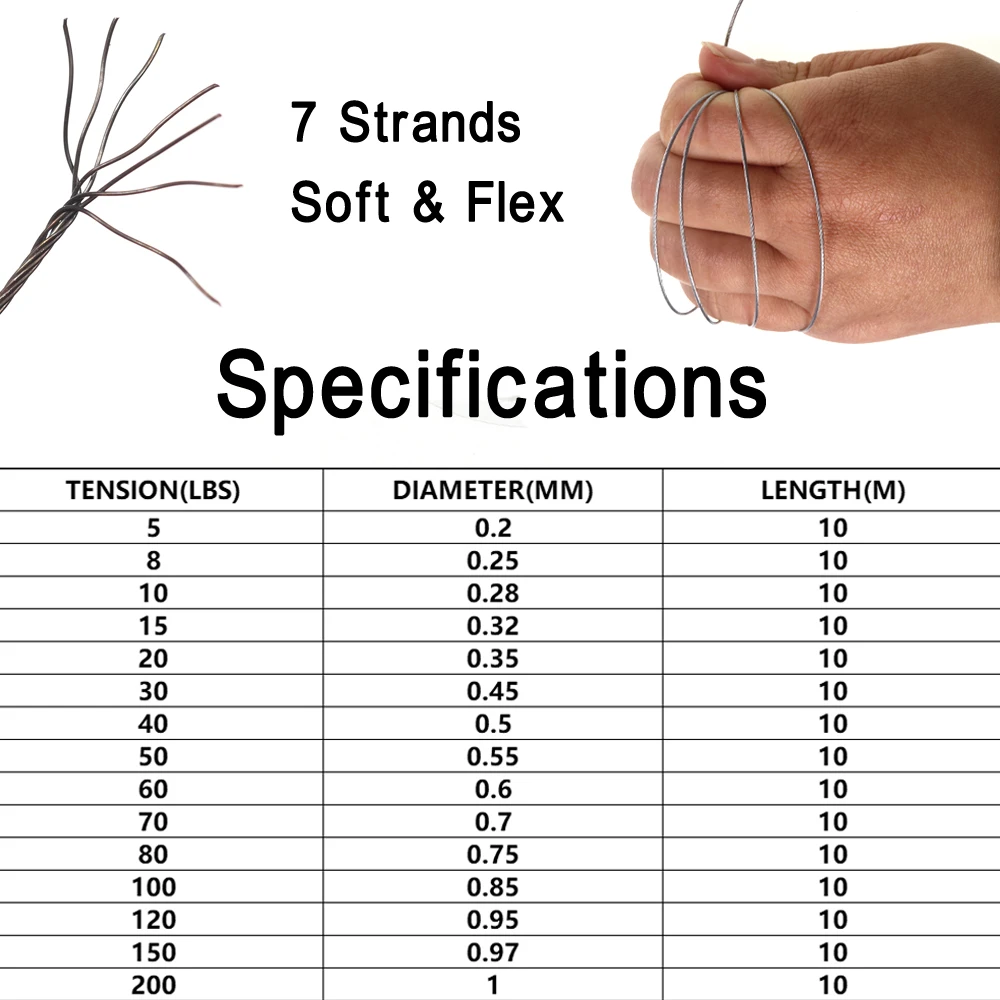 Cable de buena calidad. coincide con la descripción. Crimpe bien. Tomé dos tipos - para 5LB y 10 (2kg y 4.5kg). Colgué 1.5kg, colga sin romperse, y 3kg en consecuencia - sostiene. Muy delgado y duradero, lo reemplazaré con una fluara. RECOMIENDO al vendedor y la tienda! Todo está siendo rastreado, la entrega y el embalaje son normales. Recibido a las 5 en punto.