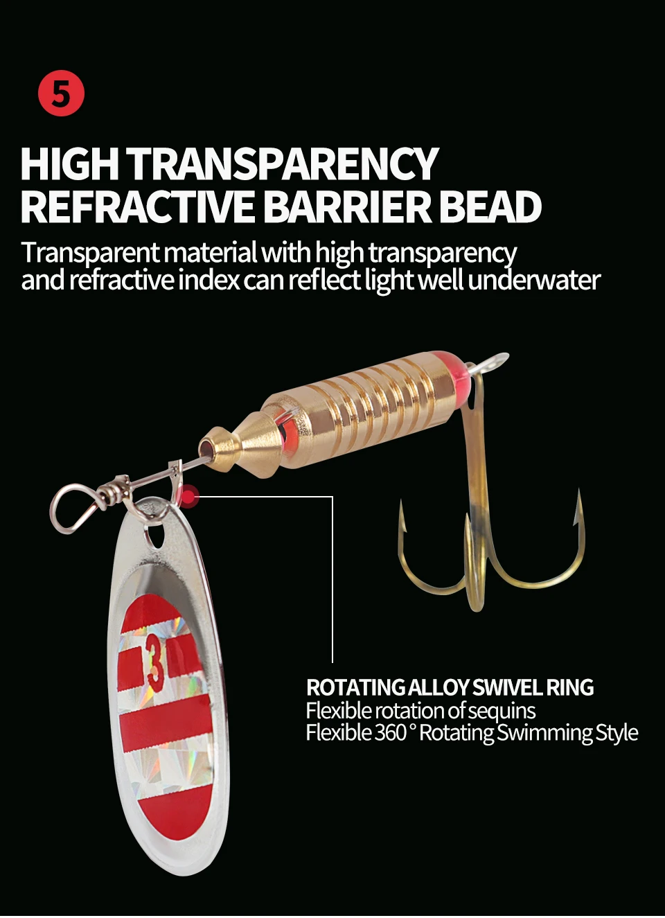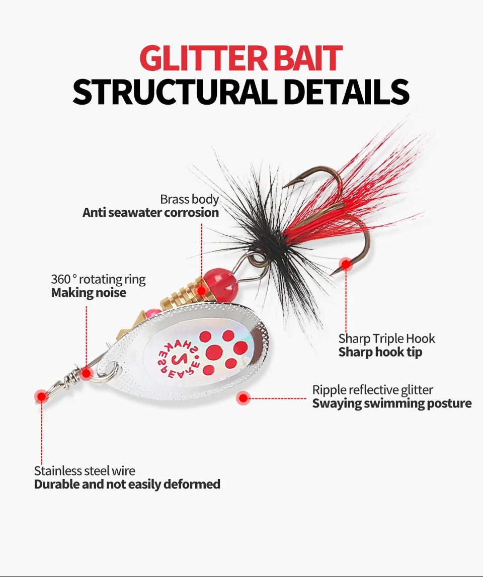 • High-Quality Material :Crafted from durable metal, this spoon spinner lure is designed to withstand the rigors of fishing, ensuring long-lasting use.
