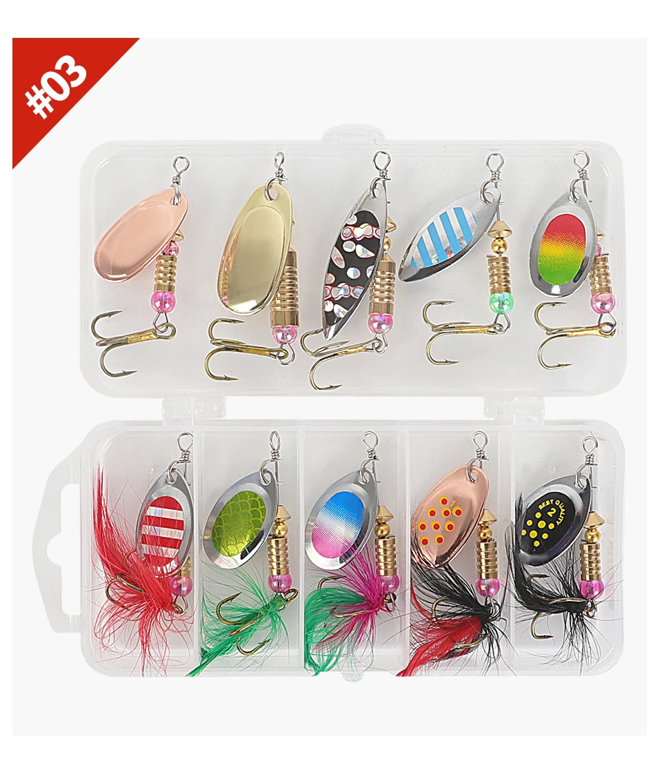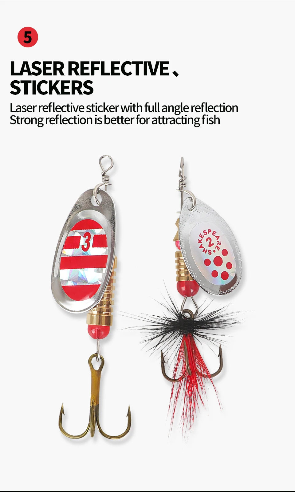 Products Features:10pcs high quality Holographic Spinner Lure kit comes with assorted bright colors and sizes.