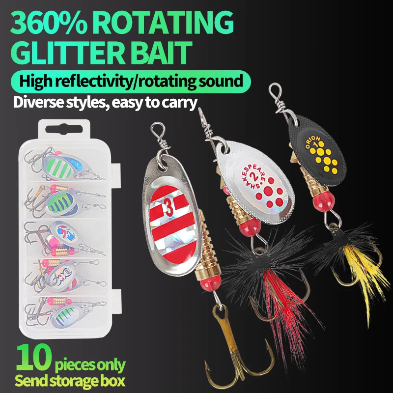 Products Features:10pcs high quality Holographic Spinner Lure kit comes with assorted bright colors and sizes.