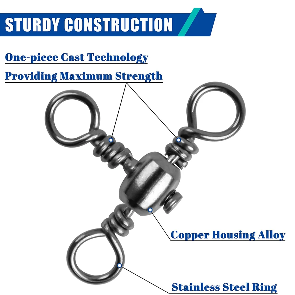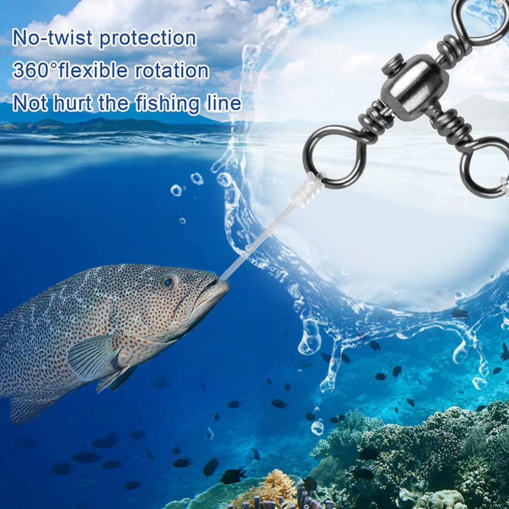 3.Conector de sedal de pesca de 3 vías en forma de T, mucho mejor que los giratorios estándar, ideal para usar en agua salada, pesca con curricán de alta velocidad, jigging y aparejos de accesorios para señuelos de pesca de surf en alta mar.