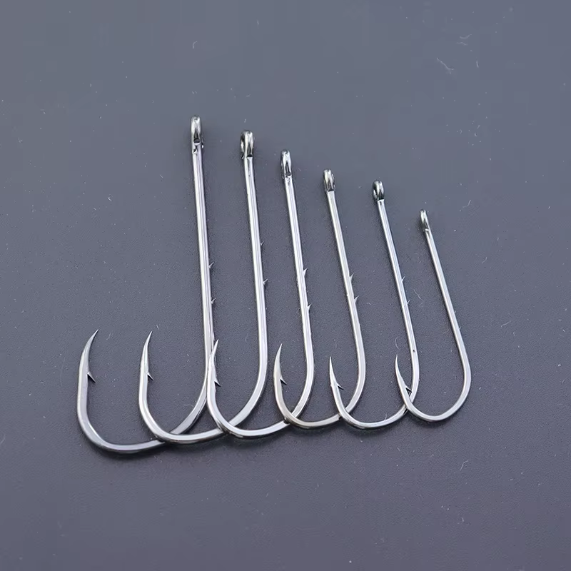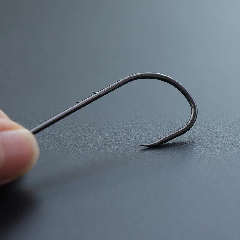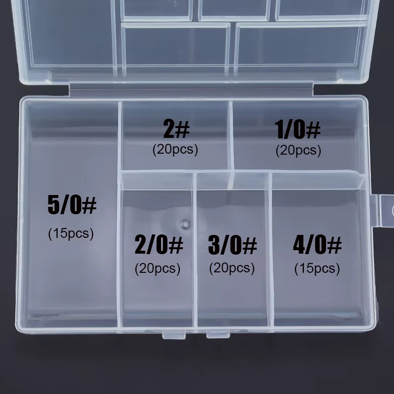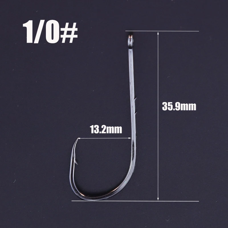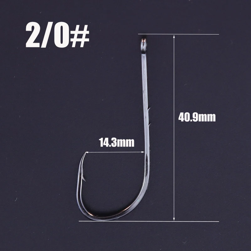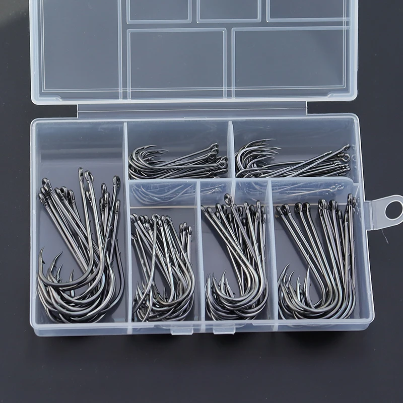 110 unids/caja anzuelos de pesca con púas de vástago largo, cebos dobles de acero rico en carbono, cabeza de junta tórica, anzuelos afilados fuertes para pesca en el mar en el océano
