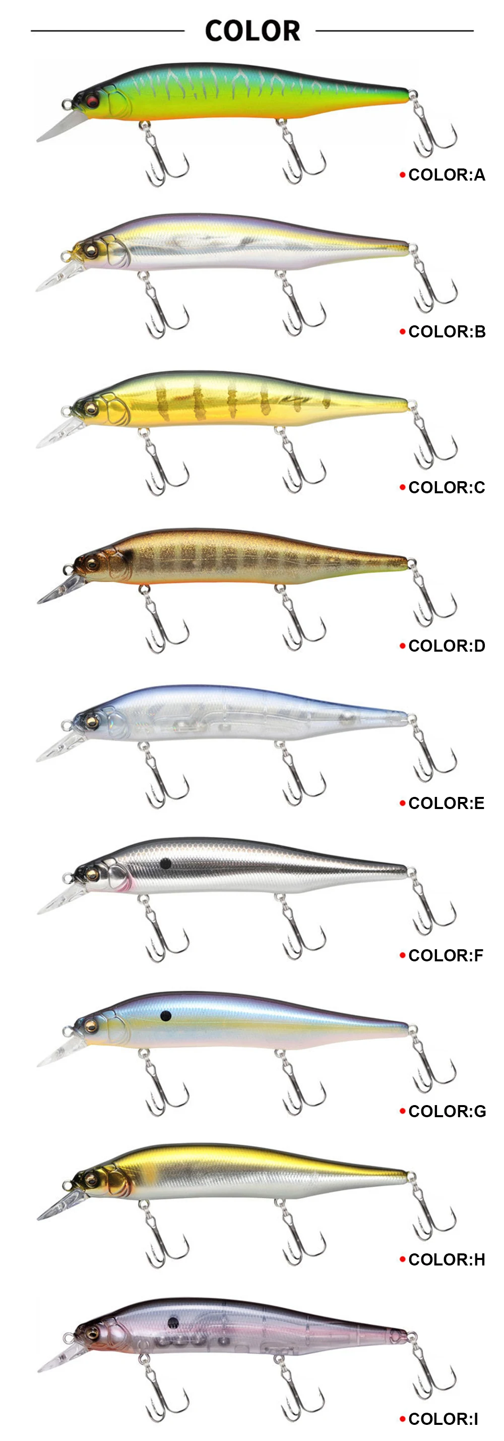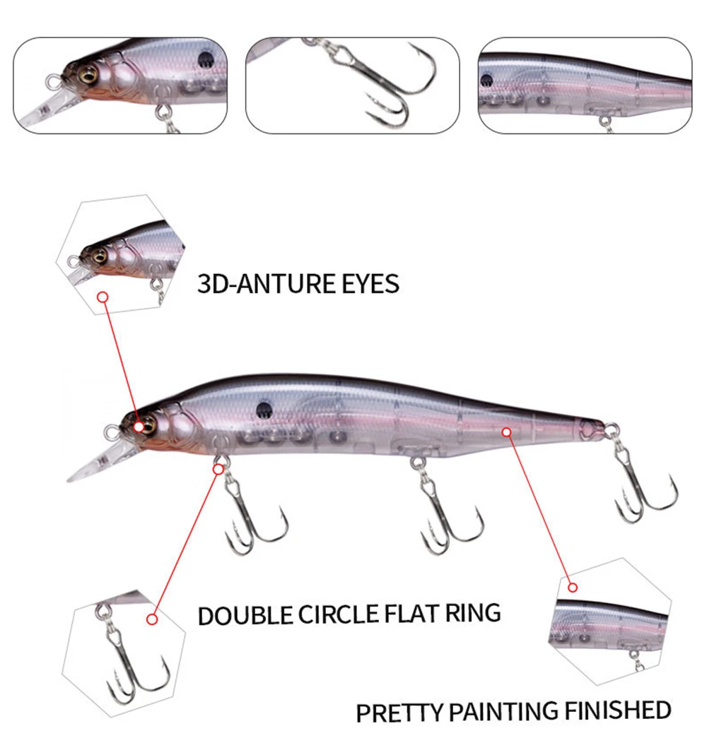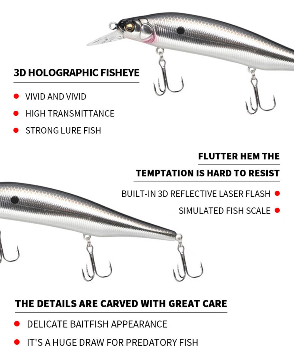 3. Los cebos tienen una pintura realista y ojos 3D vívidos, hacen que el cebo parezca peces reales nadando en el agua durante la pesca.