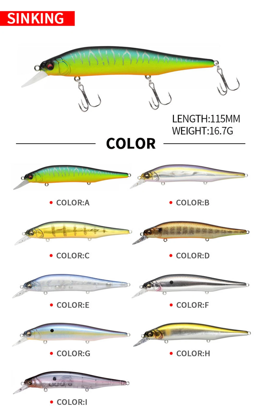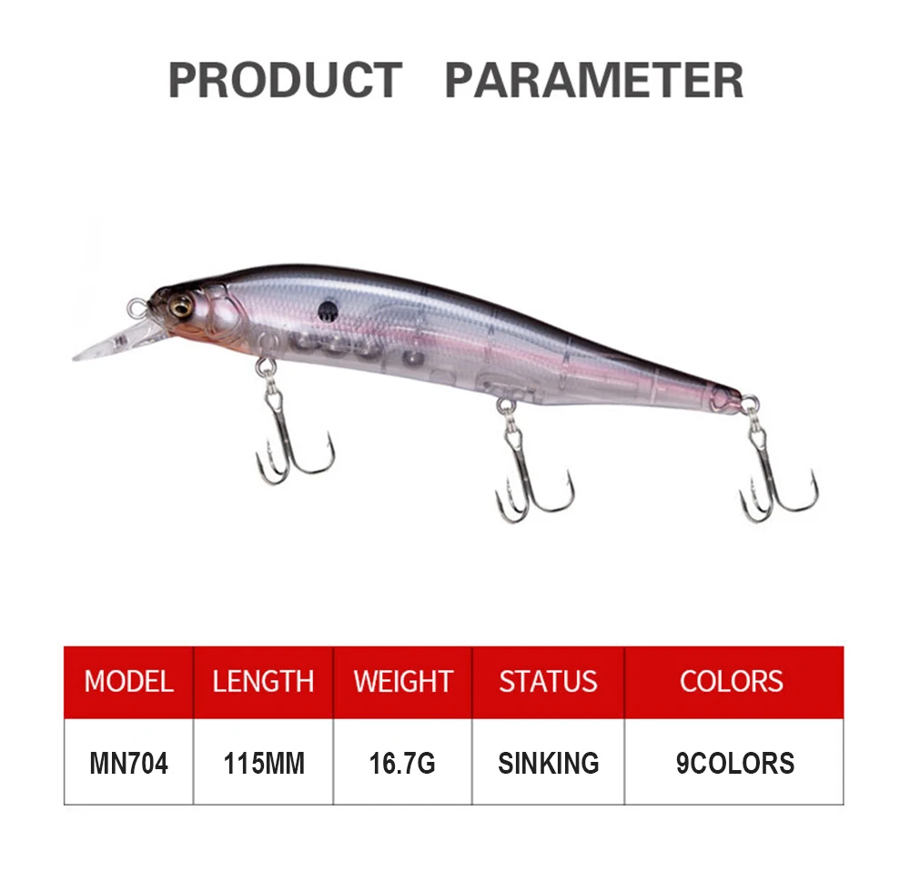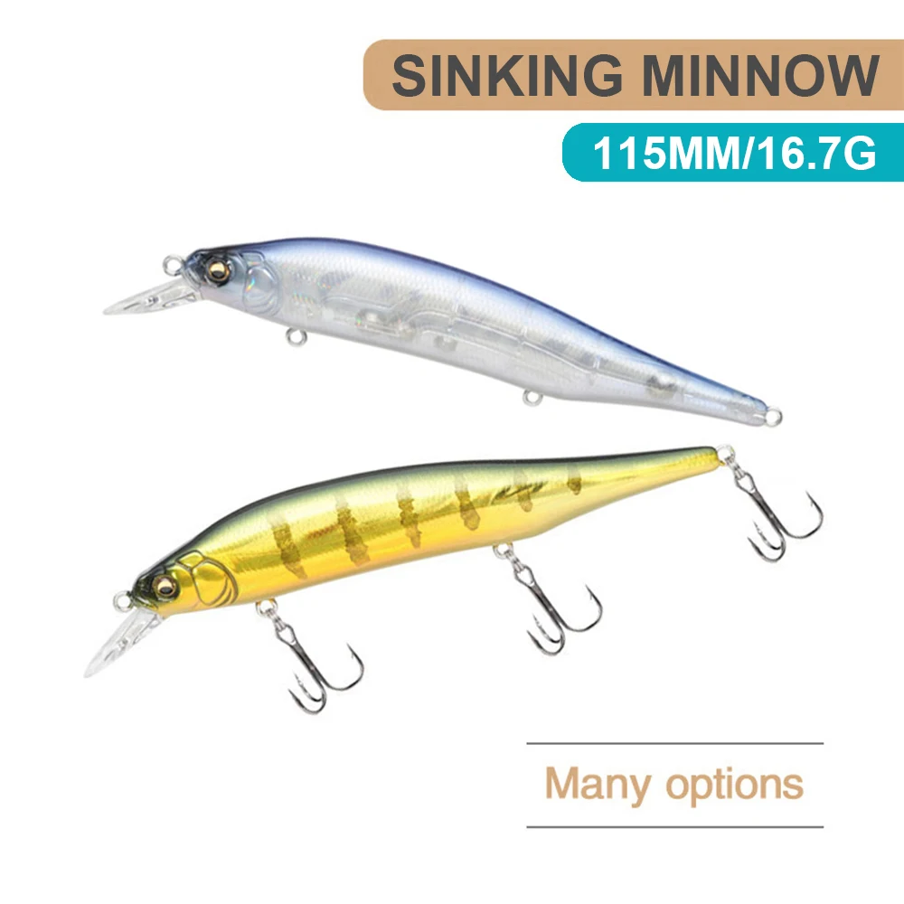 Señuelo de pesca de 11.5cm, 16.7g, Minnow Wobbler, lanzamiento largo, cebo duro Artificial, pesca en agua de mar, Jerkbait para lubina MN704