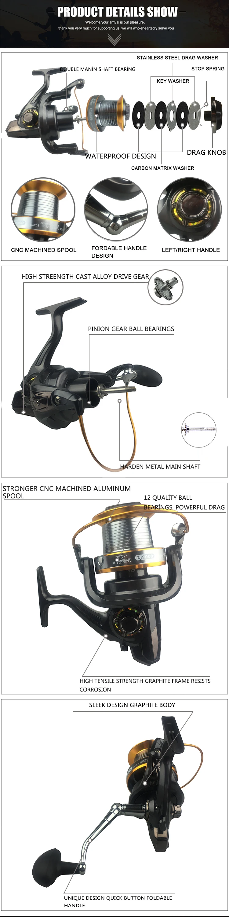12 + 1 rodamientos de bolas carretes de pesca grandes giratorios 5000-9000 tamaño Trolling carrete de pesca de Metal carpa Molinete carrete alimentador pesca