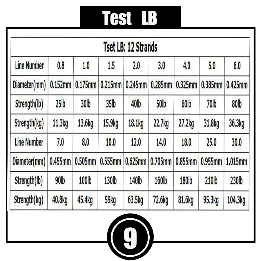 Número de línea 6,0#-0,425 mm / 80 LB / 36,3 KG, significa que la resistencia es de 80 lb (36,3 kg) y el diámetro es de 0,425 mm.