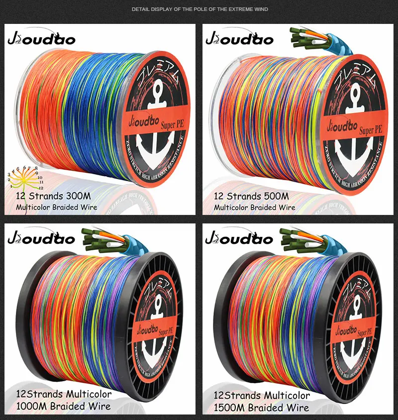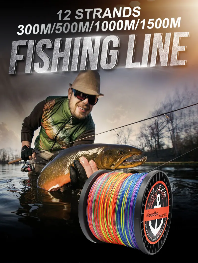 Prueba de hilo de pescar trenzado de 12 hebras LB
