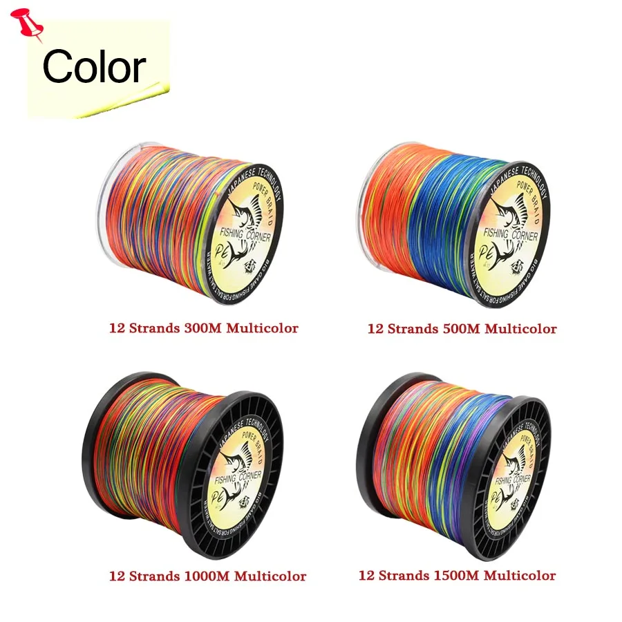 Sedal trenzado pesca Multicolor superfuerte, Sedal japonés para sedal, 12 hebras, 300m/500m/1000m/1500m, multifilamento 35-180LB